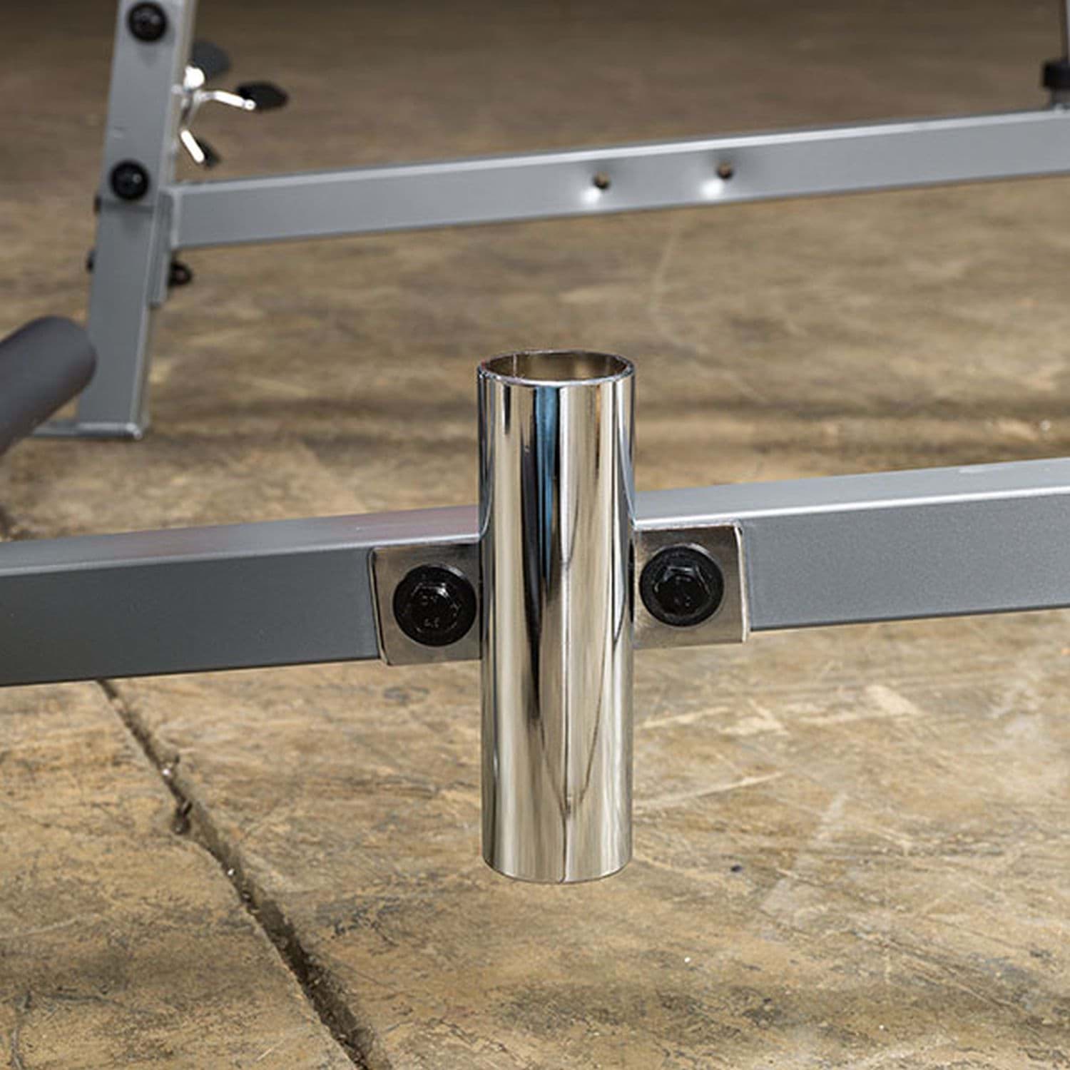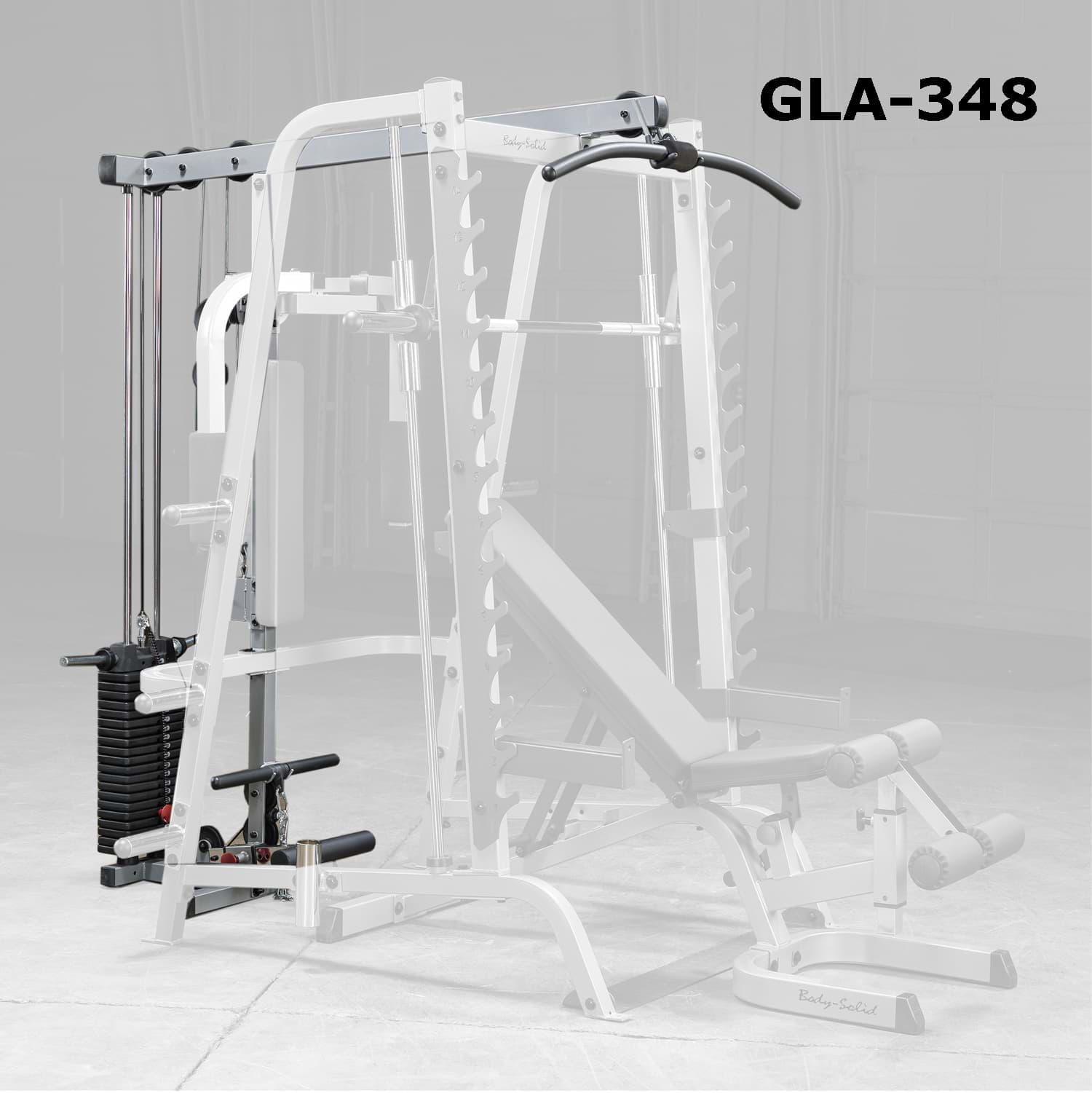 Das Body-Solid GS-348 besteht aus einer Multipresse mit Linear-Kugellagerung und einem Press-Rack für das Training mit freien Gewichten. Sowohl die Multipresse als auch das Rack verfügen dabei über mehrere Ablagemöglichkeiten (20 bzw. 14) auf unterschiedlichen Höhen. Die Multipresse sowie das Gun-Rack ist um 7° angewinkelt, um dem natürlichen Bewegungsablauf z.B. beim Kniebeugen oder Nackendrücken entgegen zu kommen.