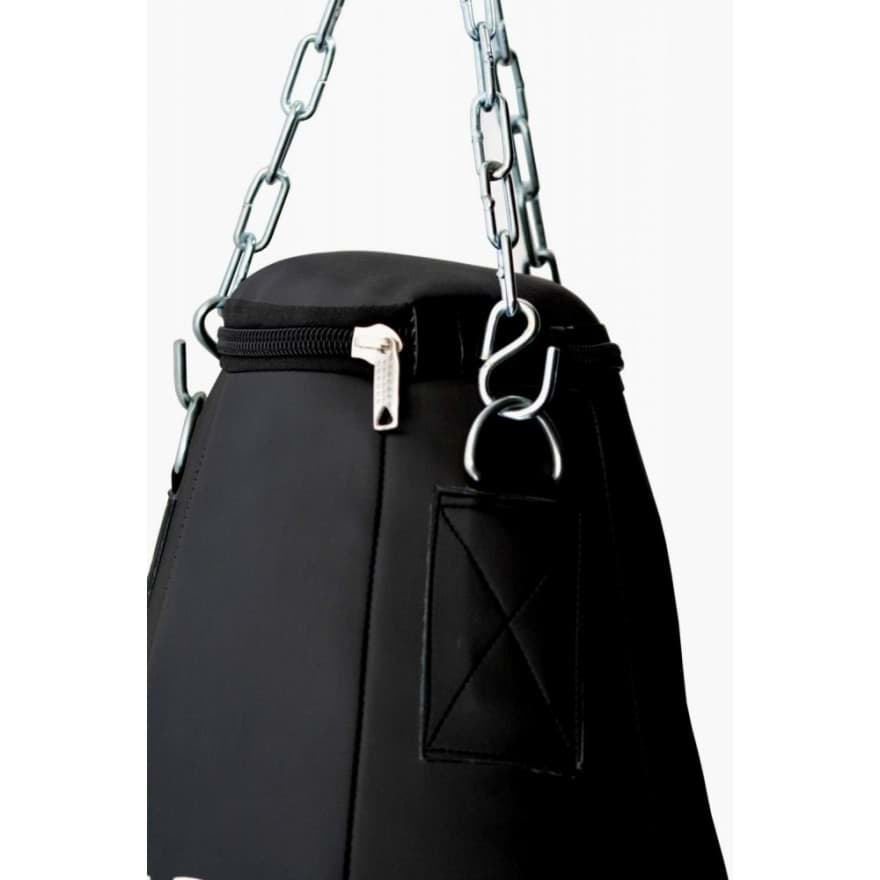Ideal geeignet für das professionelle Training zu Hause oder im Fitnessstudio. Die Boxbirne ist ein perfektes Trainingsgerät für ein effektives Fitness-, Reaktions- sowie Kraft-Konditions-Training. Das Trainingsspektrum reicht vom Ausdauertraining bis hin zum Erlernen spezieller Boxschläge, Kicks sowie Schlag-Kombinationen. Die Maisbirne besteht aus extrem strapazierfähigem Kunstleder und ist mit kleingeschnittenem Textil gefüllt, welches eine perfekte Balance zwischen Härte und Stabilität gewährleistet. Hochwertig verarbeitete Nähte mit reißfester Doppelnaht garantieren eine lange Lebensdauer. Inklusive Dreipunkt-Kette mit Drehwirbel (ca. 45cm).