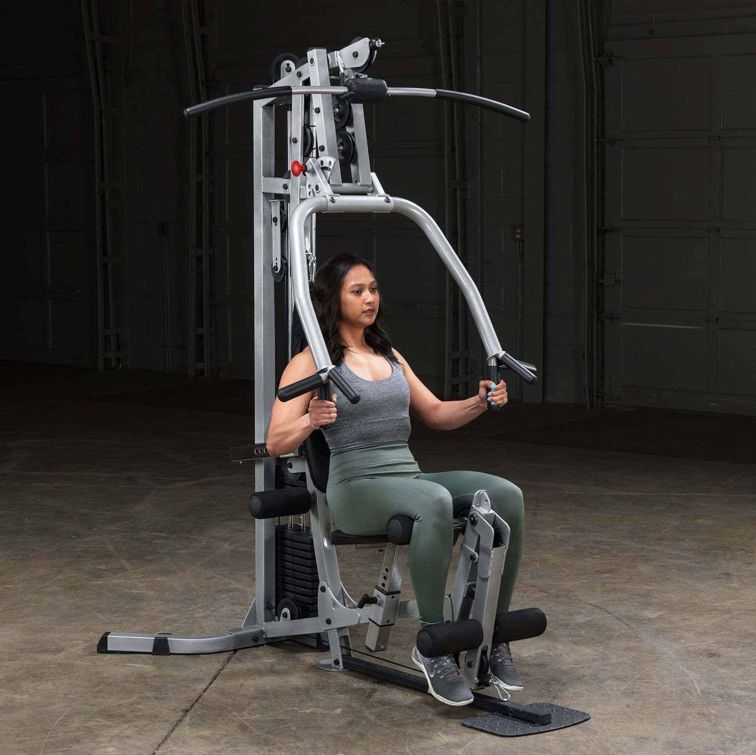 Hervorragende Trainingsmöglichkeiten, ein geringer Platzbedarf und ein schneller Aufbau sind nur drei der Eigenschaften, die das neueste BSG10X Home-Gym aus der Powerline-Serie bietet! Die Maschine wird zu 90% vormontiert in einem Karton geliefert, sodass der Aufbau kinderleicht durchführbar ist. Lediglich 9 Schrauben sind zu montieren, da sogar die Seilzüge und Rollen vormontiert sind. Sie können somit in weniger als 30 Minuten mit dem Training beginnen. Der Ganzkörpertrainer verfügt über einen 72kg-Gewichtsblock eine , einem in 8 Positionen verstellbaren Pressarm sowie einen Beinstrecker, sodass eine Vielzahl von Übungen sicher und biomechanisch korrekt durchgeführt werden können. Dank des mehrfach höhenverstellbaren Sitzpolsters kann das BSG10X an jede Körpergröße angepasst werden. Eine Latzugstange, eine Ruderstange sowie ein AB-Crunch-Gurt (Crunch-Harness) ist zudem bereits im Lieferumfang enthalten.