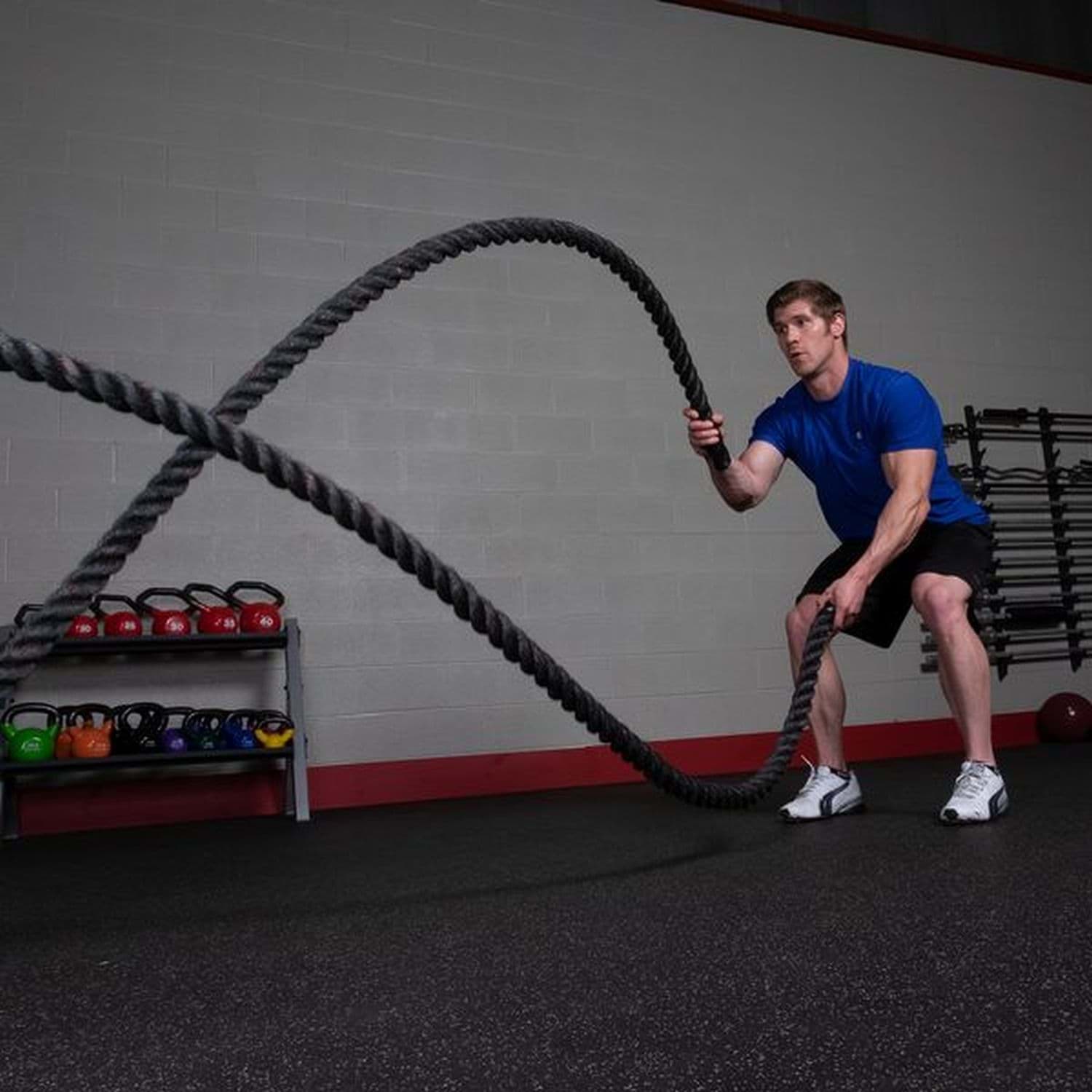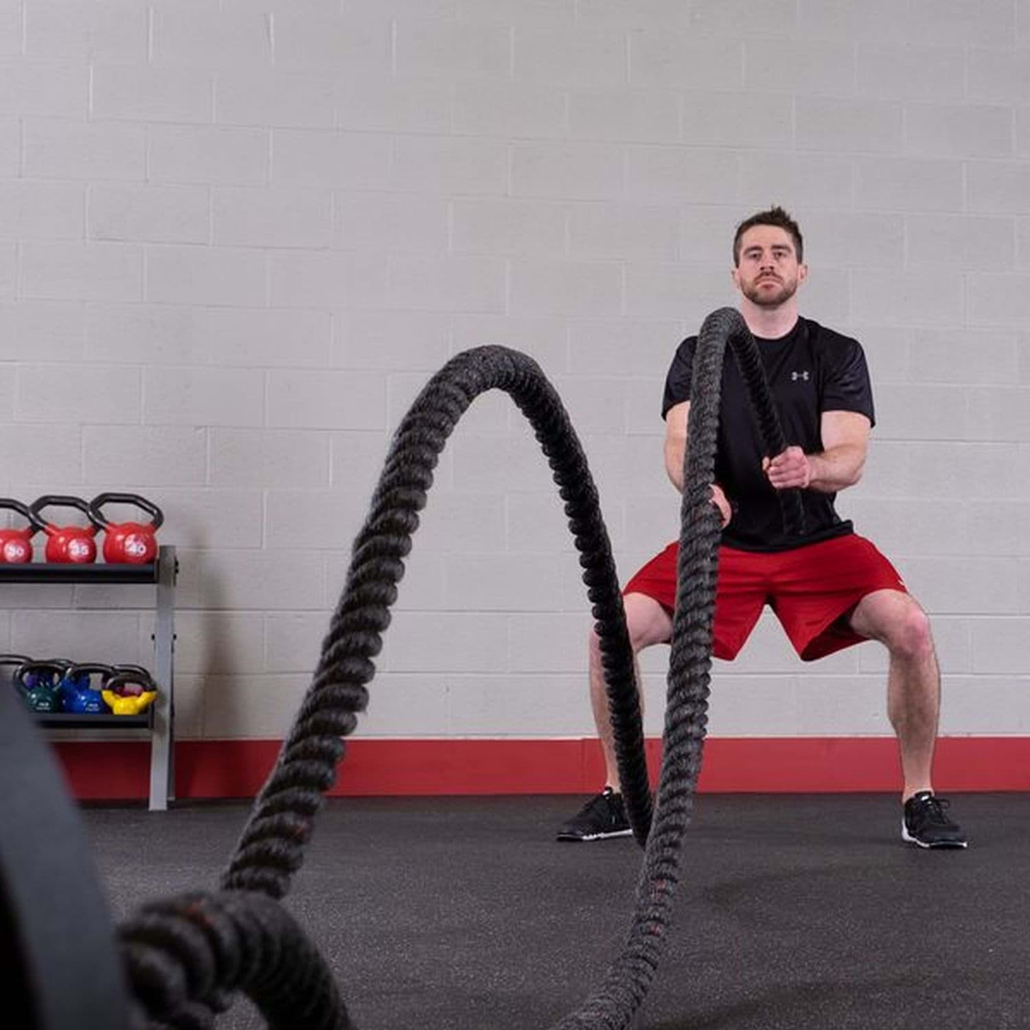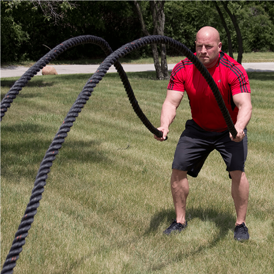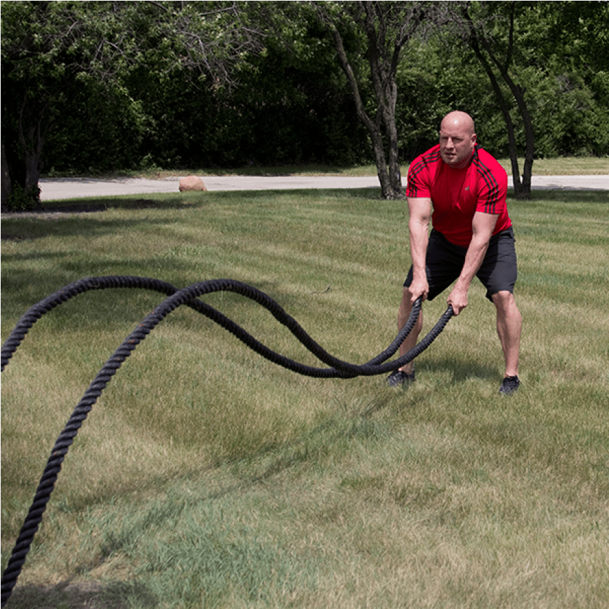 Battle-Ropes ermöglichen ein effektives, effizientes und vor allem gelenkschonendes Workout und eignen sich dadurch perfekt für das professionelle Kraftausdauer- sowie Muskelaufbautraining. Durch die komplexen Bewegungsabläufe werden viele Muskelgruppen gleichzeitig beansprucht, wodurch muskuläre Dysbalancen reduziert bzw. beseitigt werden können. Dank der extra griffigen Seilenden mit Schrumpfschlauch wird ein Abrutschen auf ein Minimum reduziert und somit das Verletzungsrisiko durch Verbrennungen verringert. Das Trainingsseil besteht aus hochwertigen Kunststofffasern, sodass das Battle-Rope im Indoor- und Outdoor-Bereich eingesetzt werden kann.