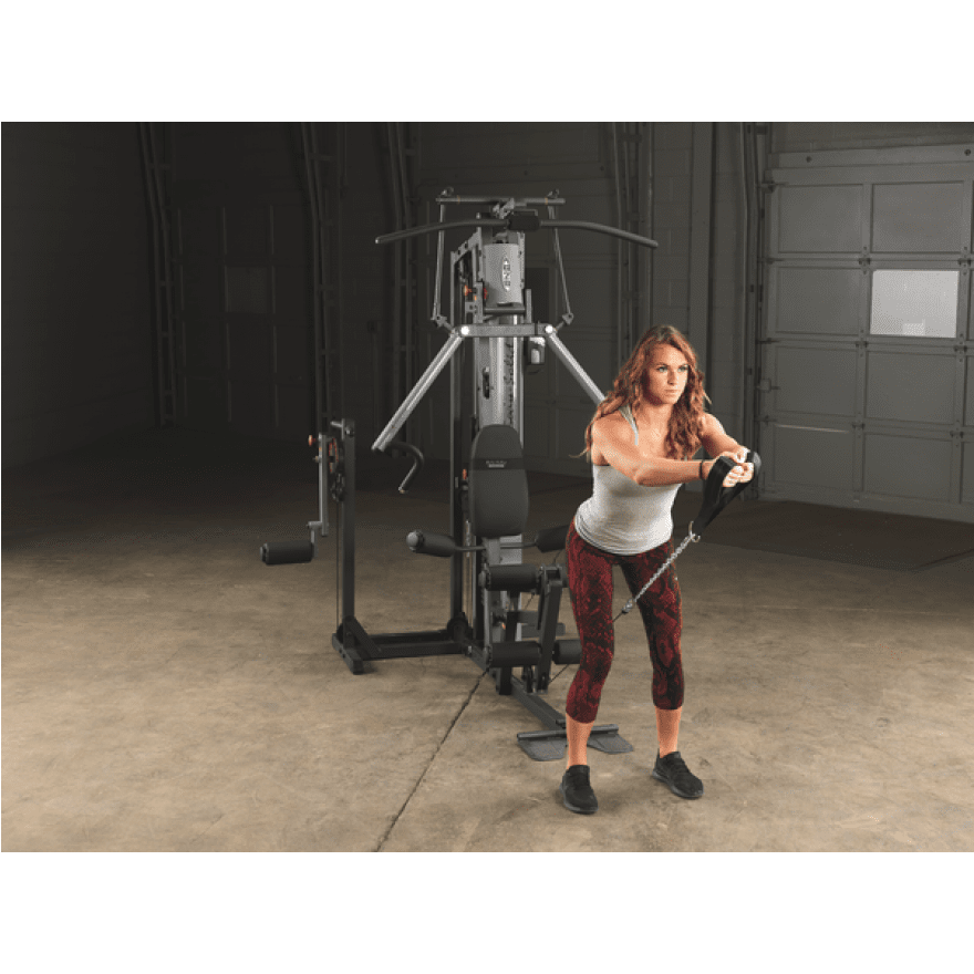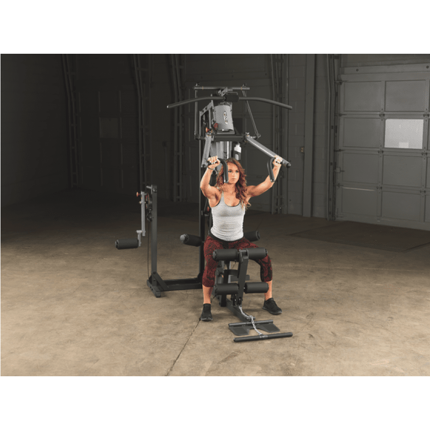 Der Body-Solid Ganzkörpertrainer ermöglicht Ihnen, alle wichtigen Muskelpartien effektiv zu belasten, sodass Sie Ihre Körpermuskulatur zielorientiert aufbauen und weiterentwickeln können.Das Hauptmerkmal des G-2B ist das patentierte Bi-Angular Pressarmsystem, wodurch bei allen Übungen mit dem Drückerbügel eine um 25% höhere Muskelkontraktion und somit ein effizienteres und vollständiges Workout ermöglicht wird. Dieses vielseitige Fitnessgerät verfügt zudem über eine Multi-Hip-Station, mit der Sie Ihre Hüfte, Ihre Beine und Ihren Po zielgenau trainieren können. Wenn Sie auf dem Boden sitzend Ruderübungen durchführen, kann die hochklappbare Fußstütze aufgerichtet werden, um so die nötige Stabilität zu erhalten - auch bei hohen Gewichten. Das in der Höhe sowie im Neigungswinkel verstellbare Rückenpolster verfügt über eine Lendenwirbelstütze für eine korrekte Trainingspositionierung und maximalen Komfort. SmoothGlide™-Lager bieten Ihnen darüber hinaus reibungsfreie Bewegungsabläufe bei jeder Übungseinheit.