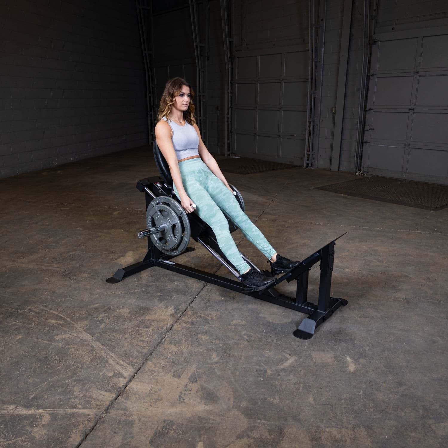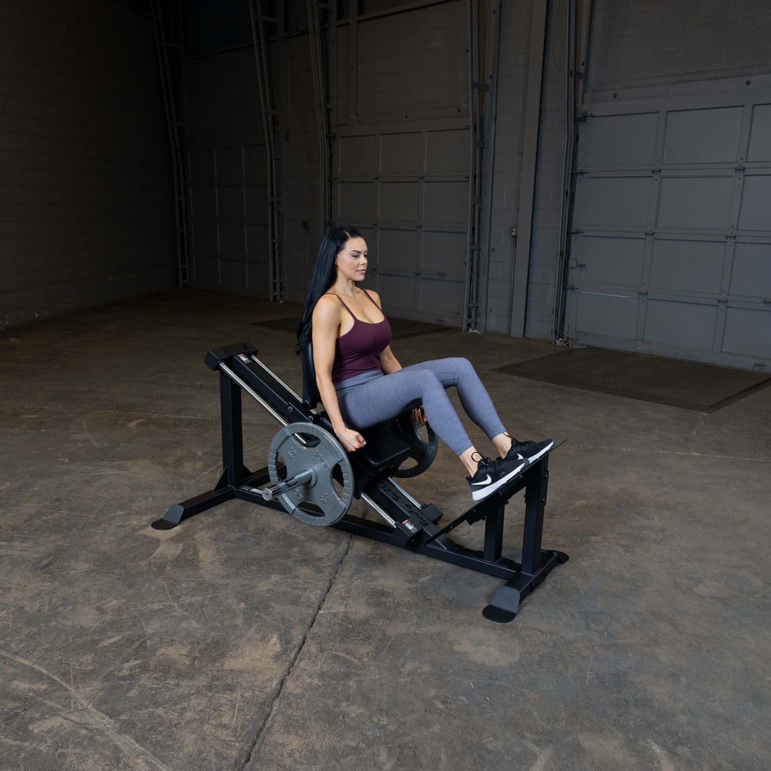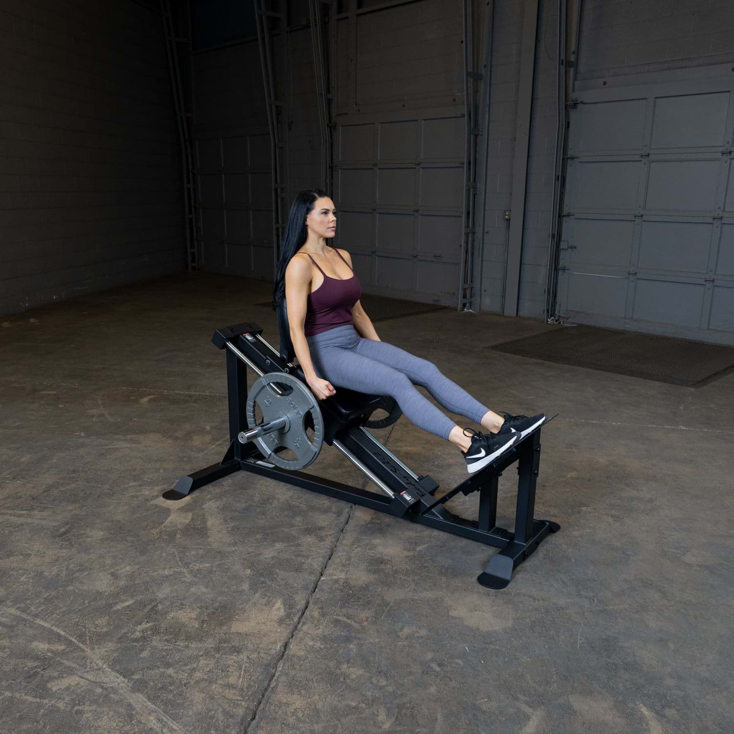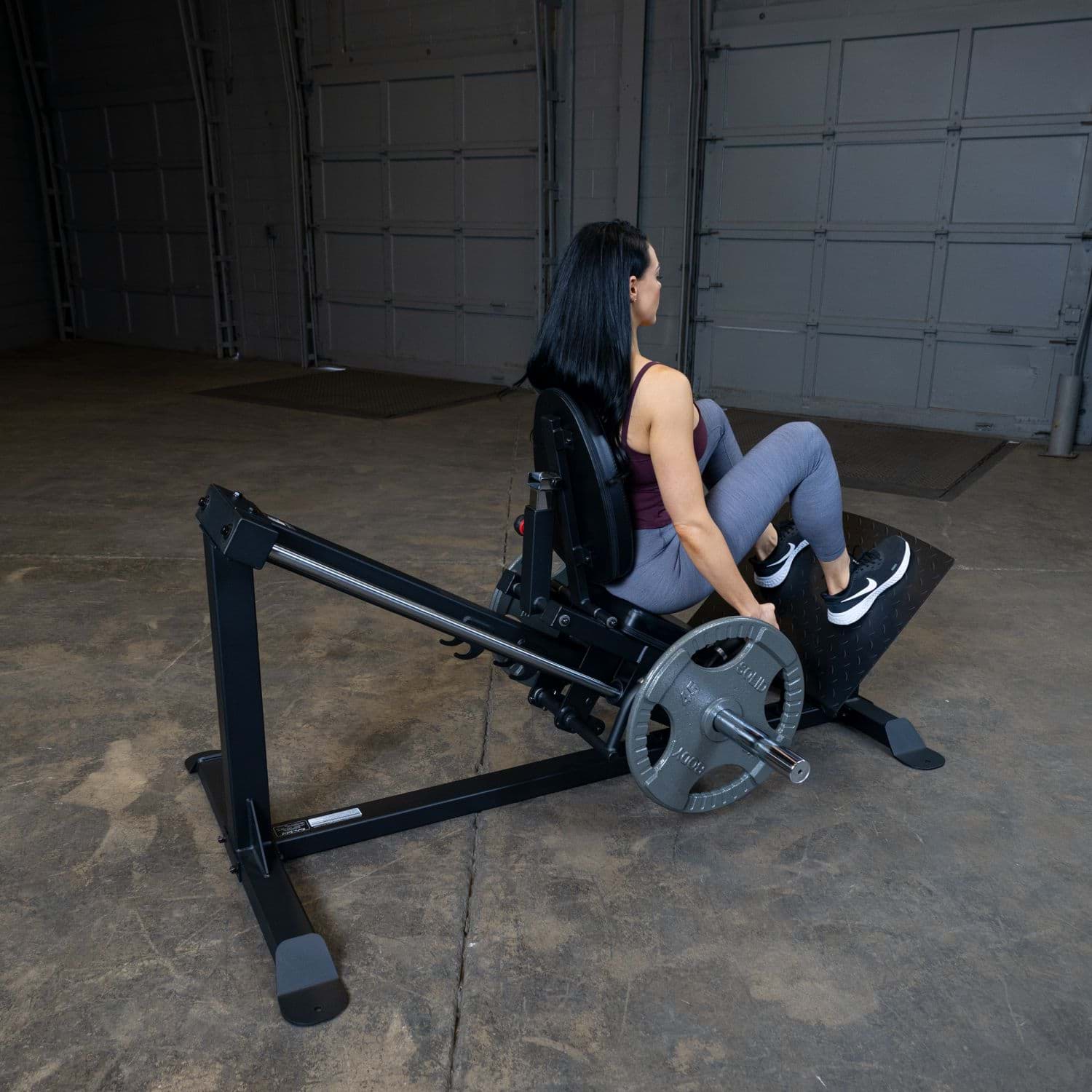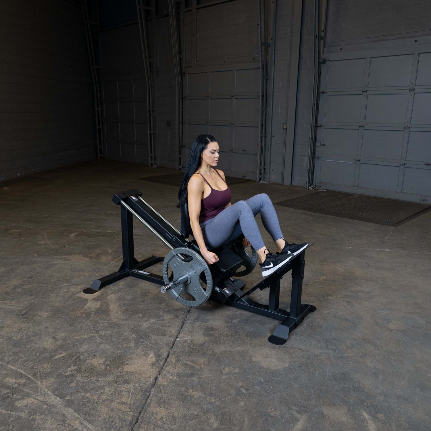 Die Body-Solid GCLP-100 vereint eine Beinpresse sowie eine Wadenhebestation in einem kompakten, sicheren und einfach zu bedienenden Gerät. Mit einer Breite von nur 120cm und einer Tiefe von 170cm ist die GCLP-100 eine der kompaktesten und funktionellsten Beinpressen und passt somit problemlos in nahezu alle kommerziellen Einrichtungen und Heimstudios. Der Gewichtsschlitten gleitet auf versiegelten Linearkugellagern und extra gehärteten, verchromten Führungsstangen, die einen friktionsfreien Bewegungsablauf garantieren - selbst beim Training mit hohen Gewichten. Darüber hinaus ist das Rückenpolster per Pop-Pin mehrfach im Neigungswinkel verstellbar, wodurch es jedem Trainiereden ermöglicht wird, eine optimale und korrekte Sitzposition zu finden, um so die Belastung auf den unteren Rücken zu vermeiden. Seitlich angebrachte Haltegriffe sorgen dabei für die nötige Stabilität während der Trainingsdurchführung. Dank der speziellen Konstruktion aus dickem Stahl, kann die GCLP-100 mit einem Trainingsgewicht von bis zu 450kg beladen werden, wodurch Sie allen Anforderungen auch in stark frequentierten Einrichtungen standhält.