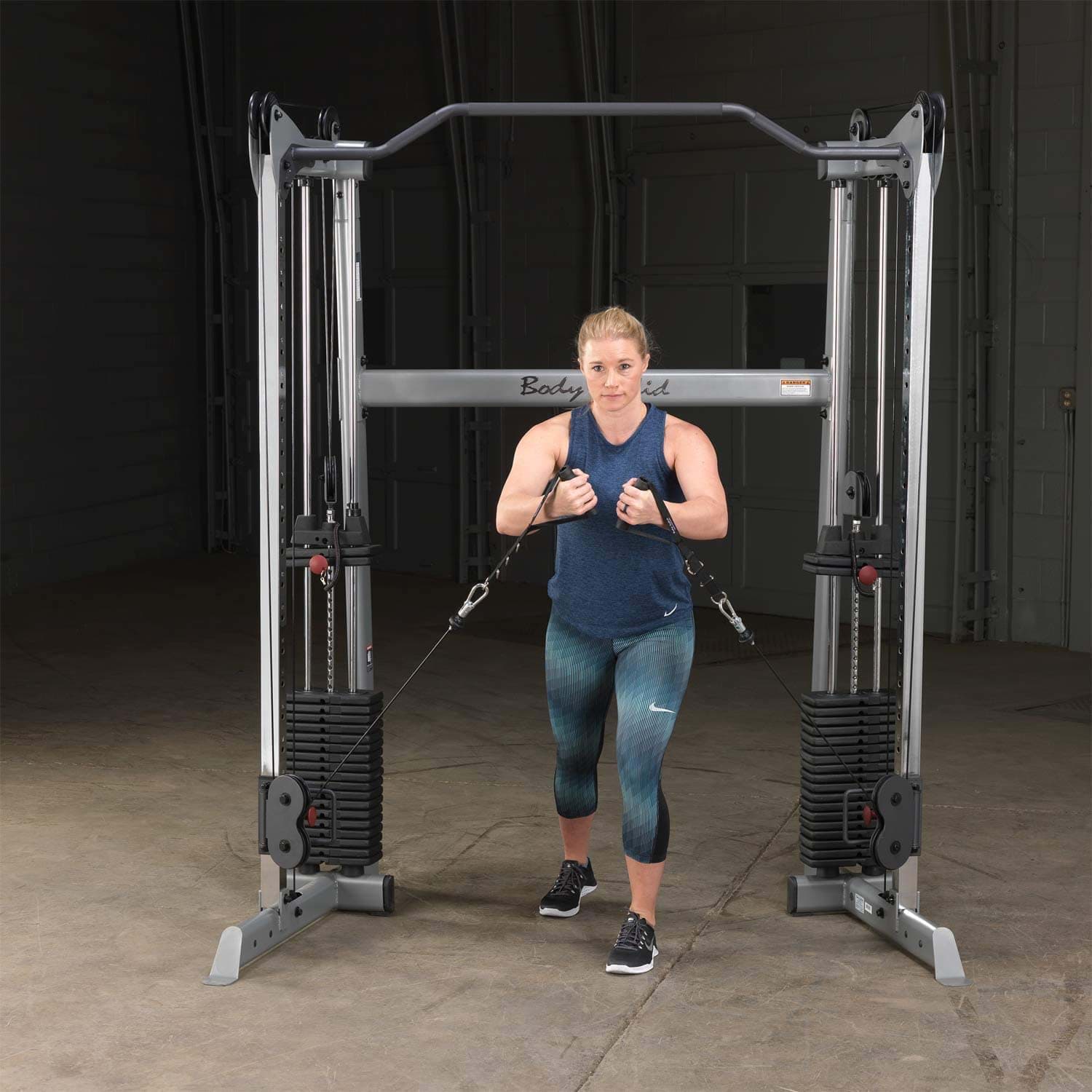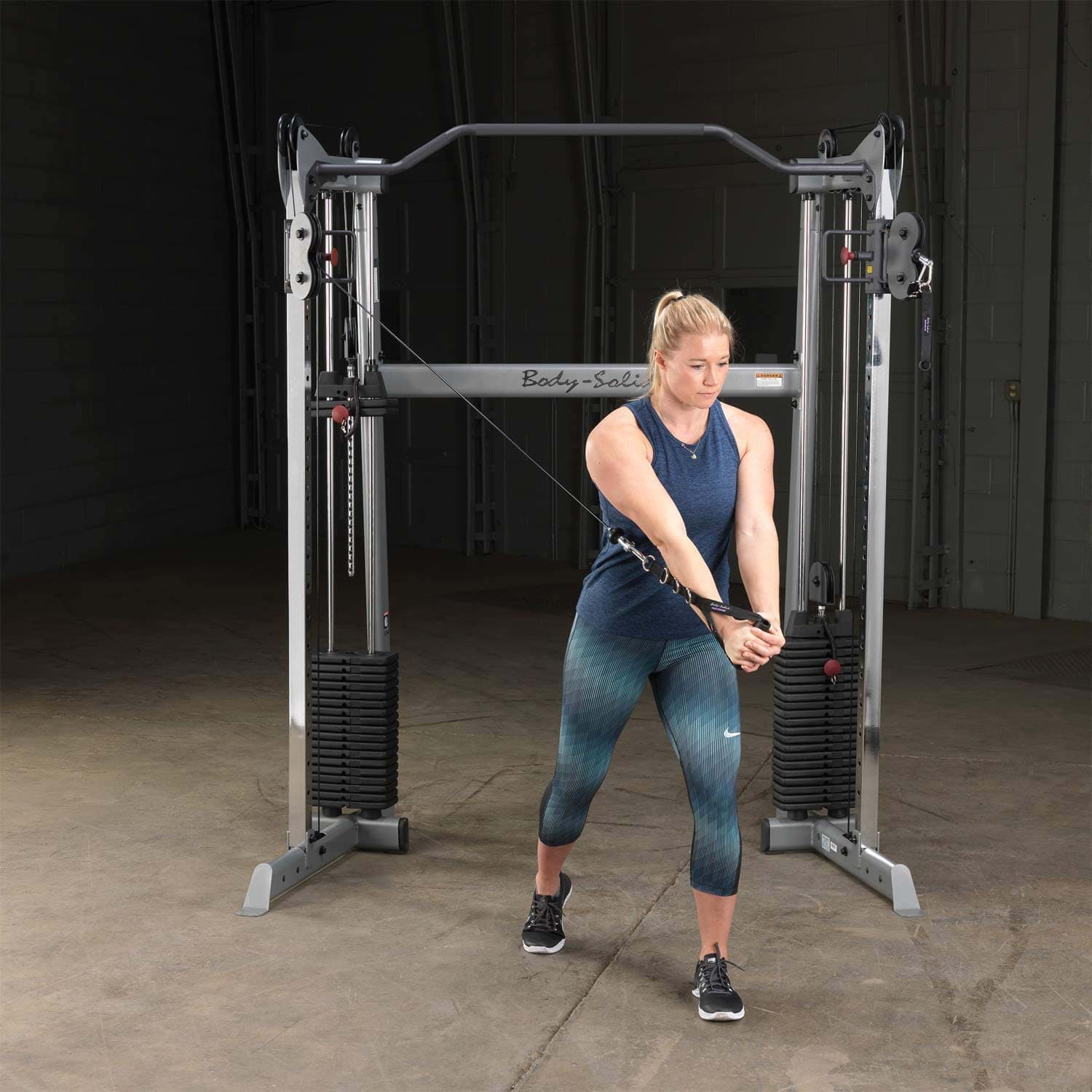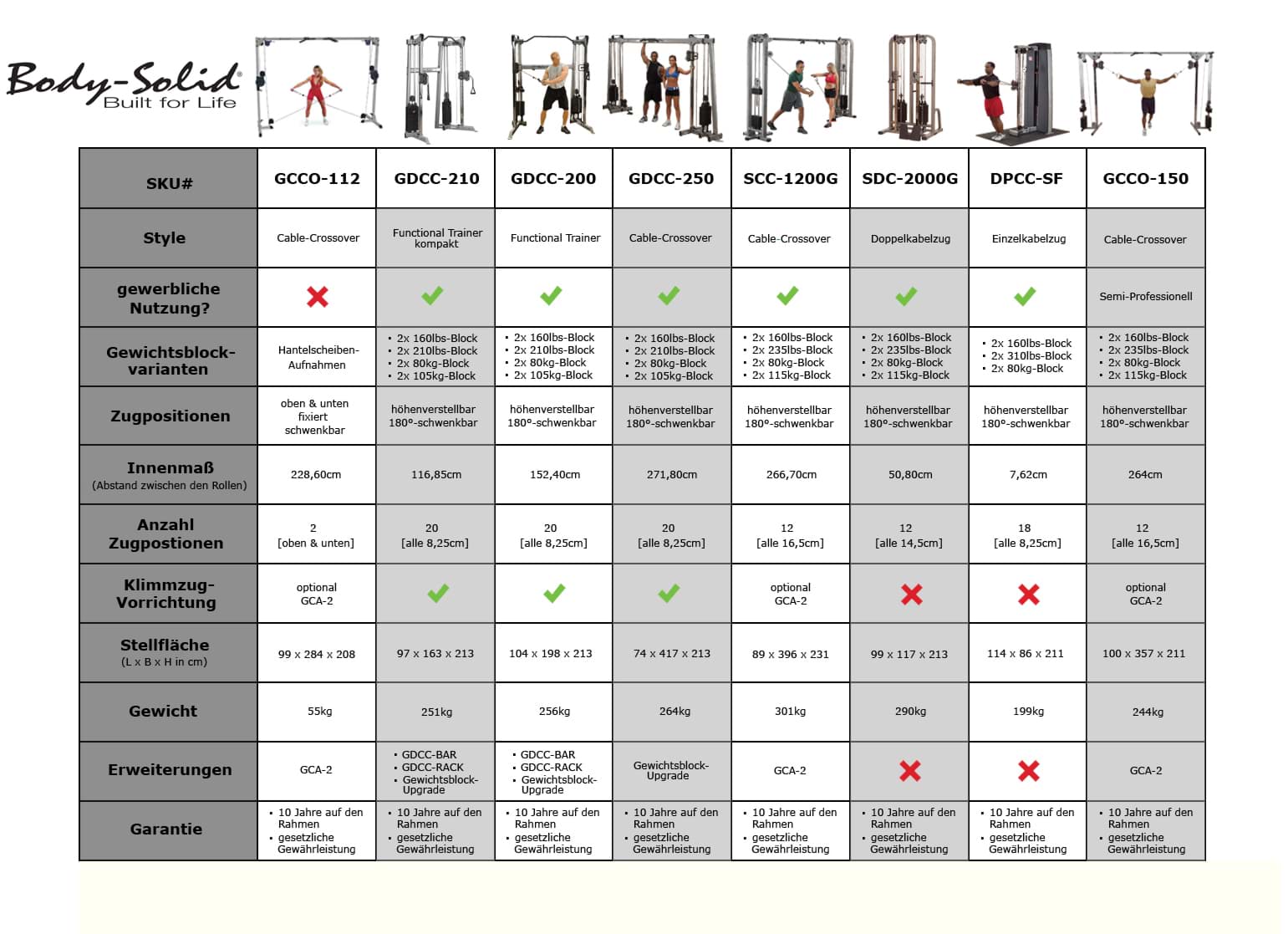 Mit seinem platzsparenden Design, zwei unabhängigen Gewichtsblöcken, "Easy-Click"-Verstellungen sowie präzisionsgefertigten Komponenten ist der GDCC-200 Multi-Kabelzug eine Bereicherung für jeden Trainingsraum. Unabhängig vom Fitness-Level können alle wichtigen Muskelgruppen trainiert werden, um so Ihre Balance, Koordination sowie Körperstabilität zu verbessern. Das Functional Training Center verfügt ab Werk über zwei Steckgewichtsblöcke, die unabhängig voneinander benutzt werden können. Kugelgelagerte Umlenkrollen sowie ein nylonbeschichtetes Stahlseil aus dem Flugzeugbau reduzieren die Reibungskräfte auf ein Minimum und gewährleisten dadurch ein friktionsfreies Training mit konstanter Zugspannung. Der jeweils 19-fach höhenverstellbare Schlitten lässt sich im Gegensatz zum Body-Solid GCCO-150 durch den zusätzlich angebrachten Bügel einhändig bedienen, wodurch Sie diesen schnell und einfach auf jede gewünschte Position einstellen können. Mit der optional erhältlichen GDCC-BAR können Sie zudem beide Gewichtstürme miteinander verbinden, sodass Kniebeugen, Ausfallschritte u.v.m. durchgeführt werden können.