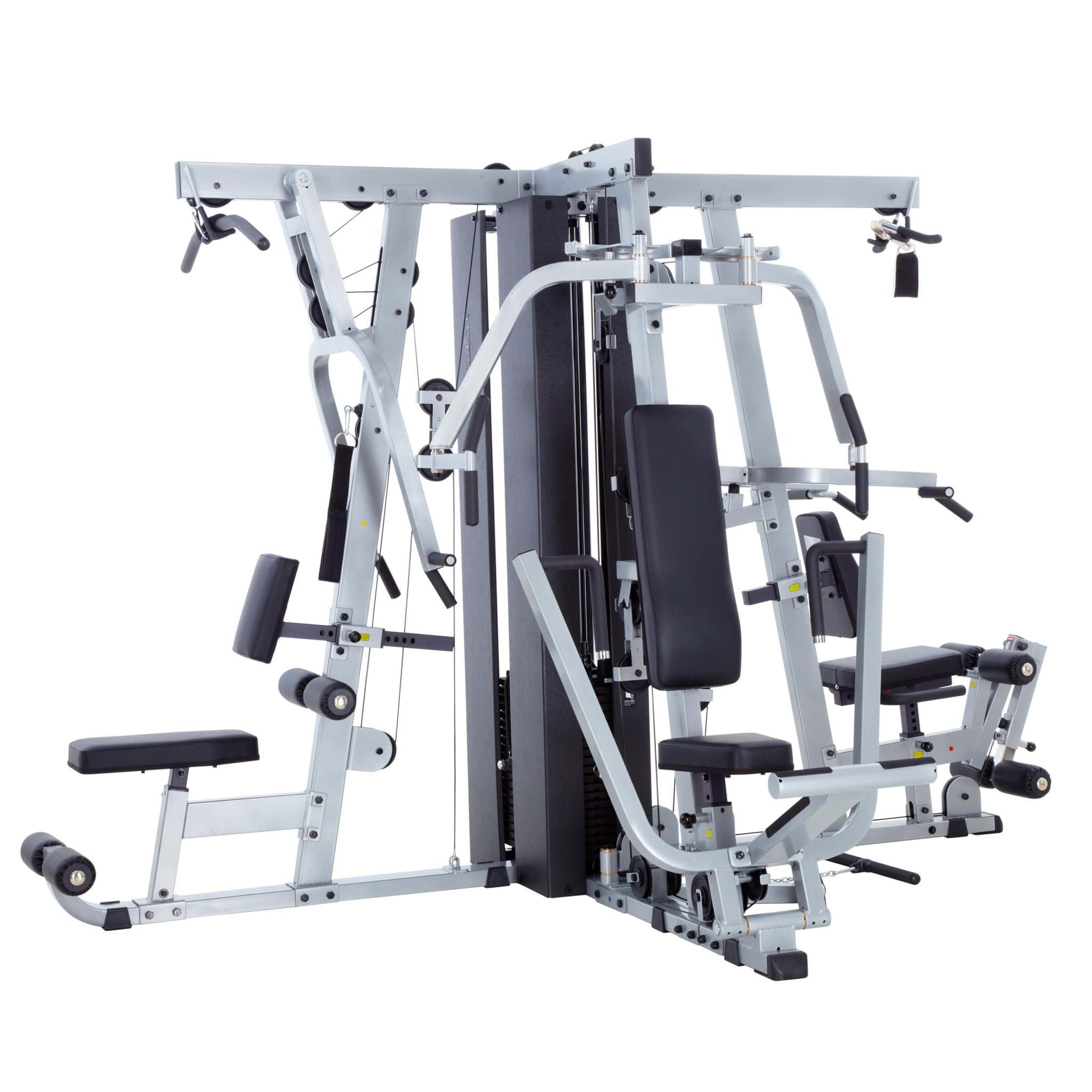 Das Body-Solid GEXM-4000S wurde für diejenigen entwickelt, die das ultimative Fitnesspaket verlangen. Es bietet eine enorme Bandbreite an Ober- und Unterkörperübungen für maximale Muskelkraft, Ausdauer und Koordination. Mit dem optionalen Beinpressen-Anbau können sogar bis zu vier Personen gleichzeitig trainieren. Die 3-Stationenvariante mit jeweils einem eigenen 95kg-Gewichtsblock lässt sich bequem an der Wand oder in der Mitte des Raumes aufstellen. Der vierte Gewichtsblock gehört zum Lieferumfang des optionalen Beinpressen-Anbaus. Zu den einzigartigen Merkmalen des Multi-Gyms gehören u.a. eine Bankpresse mit "Kick-Assist"-Hebel für eine vollständige Dehnung und vollen Bewegungsumfang, Sitzpolster mit automatischer hydraulischer Einstellung, leicht zugängliche Pop-Pin-Einstellungen an den Polsterverstellungen sowie DuraFirm-Polster mit Lendenwirbelunterstützung.