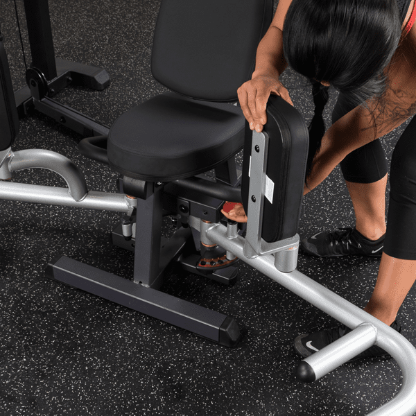 Die Abduktoren und Adduktoren (Innenseite bzw. Aussenseite des Oberschenkels) arbeiten gegensätzlich, um Ihre Oberschenkel auseinander und aneinander zu ziehen. Sie haben auch eine wichtige Funktion als Hüftstabilisator bei allgemeinen Bewegungen wie Gehen und Laufen. Dank der schwenkbaren Kniepolster können beide Übungen in sitzender Postion ausgeführt werden. Durch die 5 Startpositionen und das verstellbare Rückenpolster mit Lendenwirbelstütze kann das Gerät an jeden Nutzer angepasst werden. Gepolsterte Haltegriffe an den Seiten sorgen für die nötige Stabilität sowie eine bessere Positionierung während des Trainings. Die hochwertigen DuraFirm-Polster mit reißfester Doppelnaht bieten dabei maximalen Trainingskomfort. Durch den variablen Steckgewichtsblock kann der Trainingswiderstand schnell und einfach eingestellt werden.