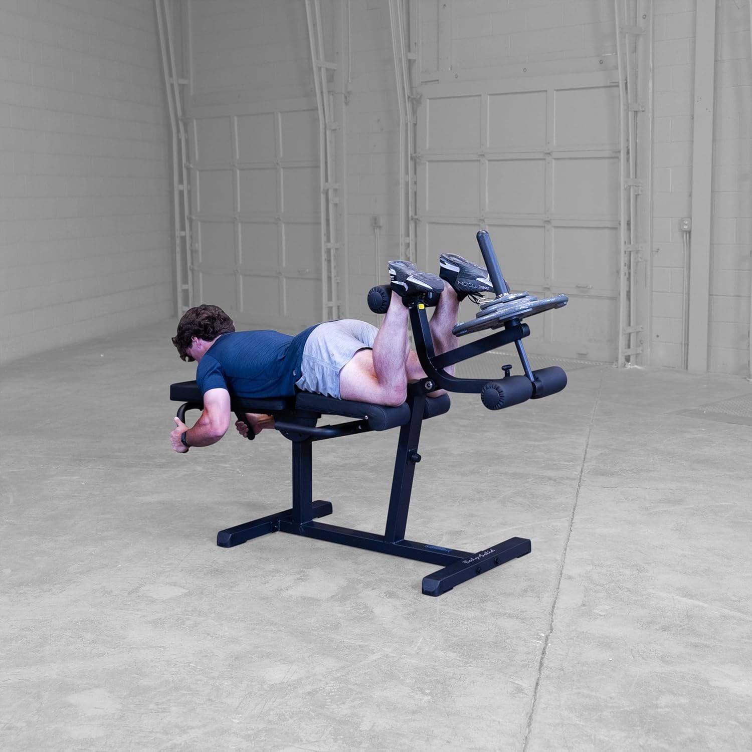Die Beinmuskulatur zählt zu den größten Muskelgruppen des menschlichen Körpers und besitzt dadurch auf das Training bezogen einen besonderen Stellenwert. Über die Einstellung der Rückenlehne kann zwischen der Beinstreckerfunktion, die sitzend ausgeführt wird und der Beinbeugerfunktion, die auf dem Bauch liegend umgesetzt wird, gewechselt werden. Dank der verstellbaren Rückenlehne und den horizontalen sowie vertikalen Einstellmöglichkeiten der Polsterrollen, kann der Body-Solid GLCE-365 nahezu perfekt an jeden Benutzer angepasst werden. Haltegriffe am Rücken- und Sitzpolster erhöhen dabei die Stabilität während des Workouts.