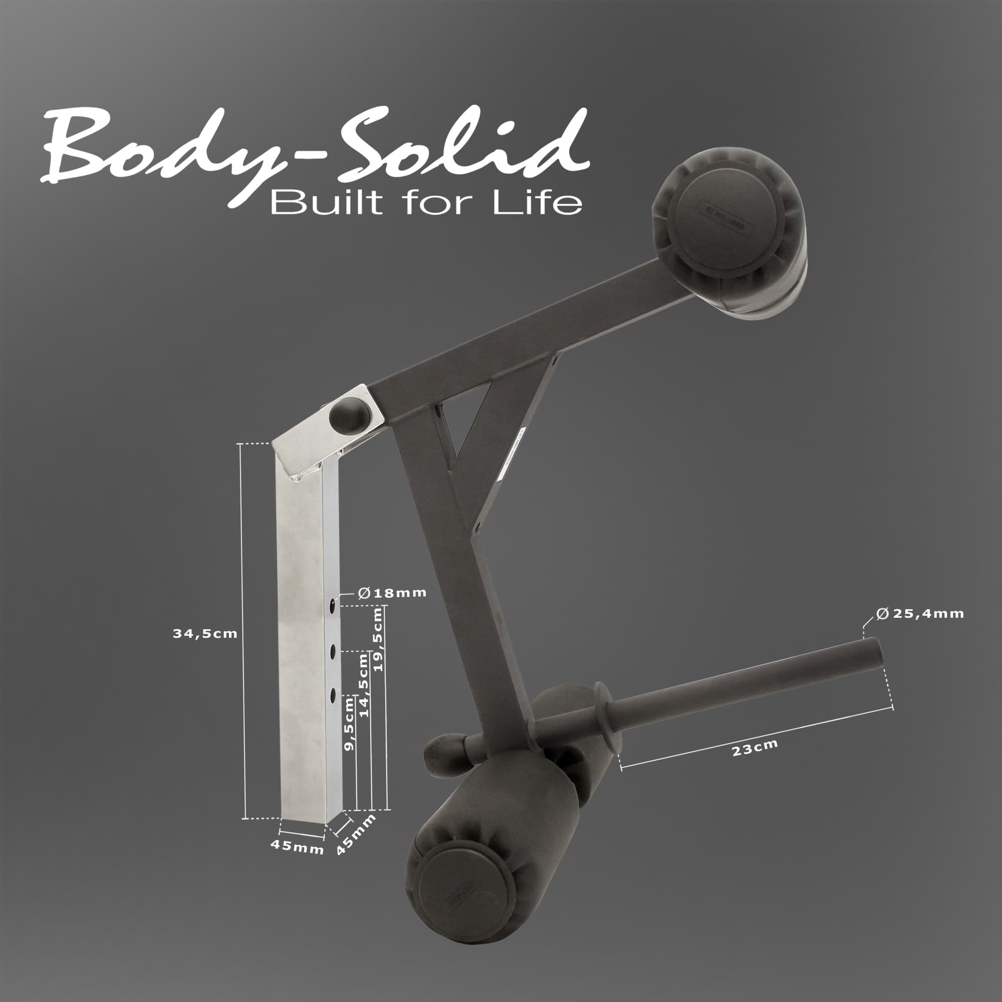 Die Beinmuskulatur zählt zu den größten Muskelgruppen des menschlichen Körpers und besitzt dadurch auf das Training bezogen einen besonderen Stellenwert. Beinstrecker-Übungen dienen zur Stärkung der Knie- und Oberschenkelmuskulatur. Beinbeuger-Übungen sorgen wiederum für eine maximale Kontraktion der Hamstring- und Gesäßmuskeln. Mit dem Body-Solid GLDA-1 Beinstrecker-/Beinbeuger-Aufsatz können Sie Ihre bestehende Hantelbank auf einfache Weise mit einem Beintrainer erweitern bzw. ausstatten.