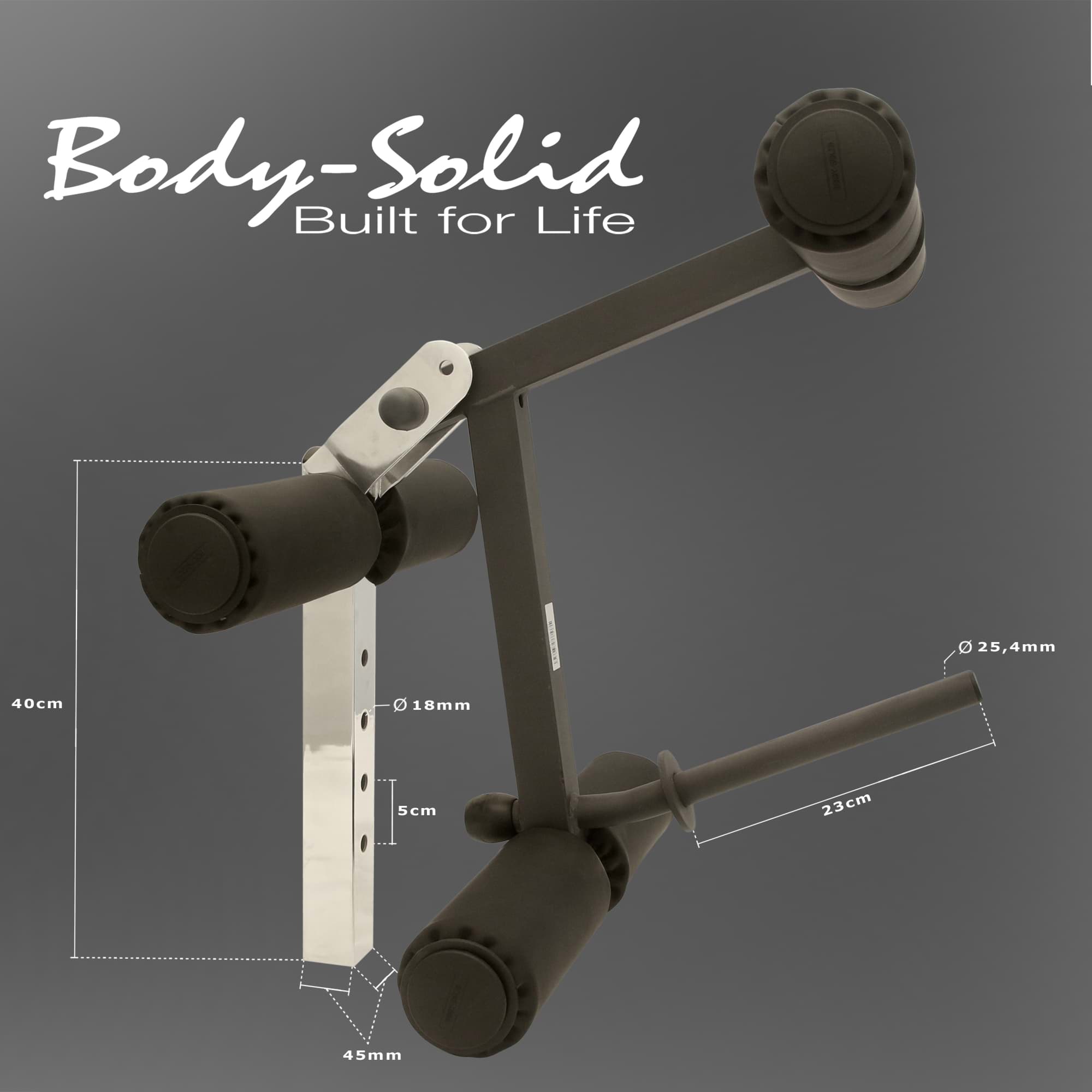 Die Beinmuskulatur zählt zu den größten Muskelgruppen des menschlichen Körpers und besitzt dadurch auf das Training bezogen einen besonderen Stellenwert. Beinstrecker-Übungen dienen zur Stärkung der Knie- und Oberschenkelmuskulatur. Beinbeuger-Übungen sorgen wiederum für eine maximale Kontraktion der Hamstring- und Gesäßmuskeln. Mit dem Body-Solid GLDA-3 Beinstrecker-/Beinbeuger-Aufsatz können Sie Ihre bestehende Hantelbank auf einfache Weise mit einem Beintrainer erweitern bzw. ausstatten.