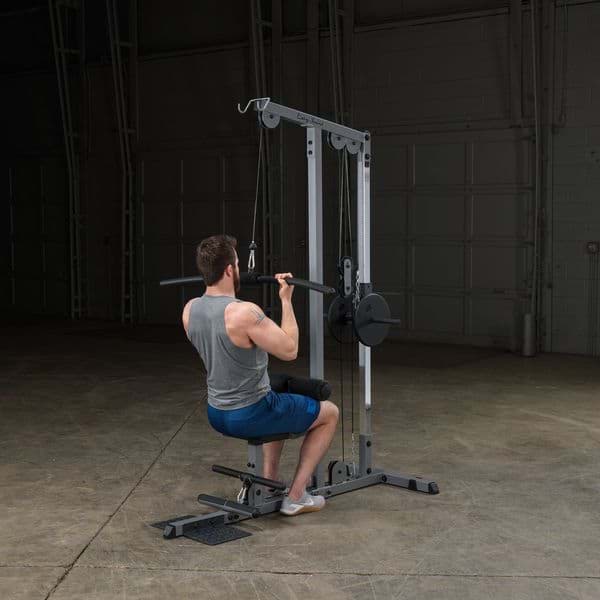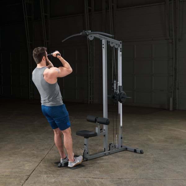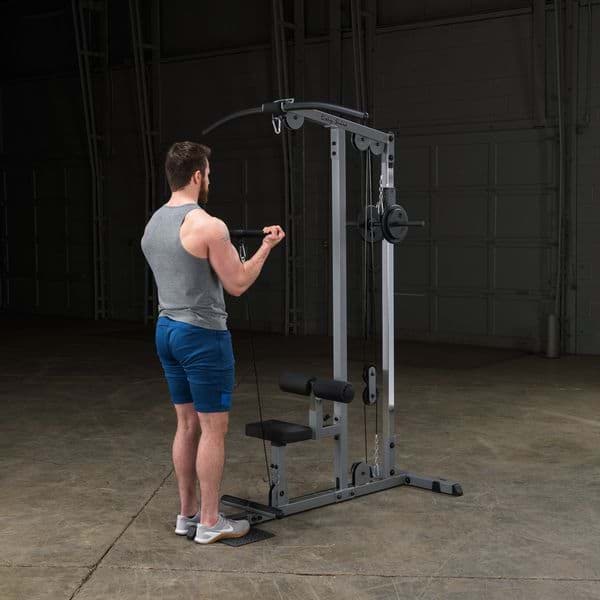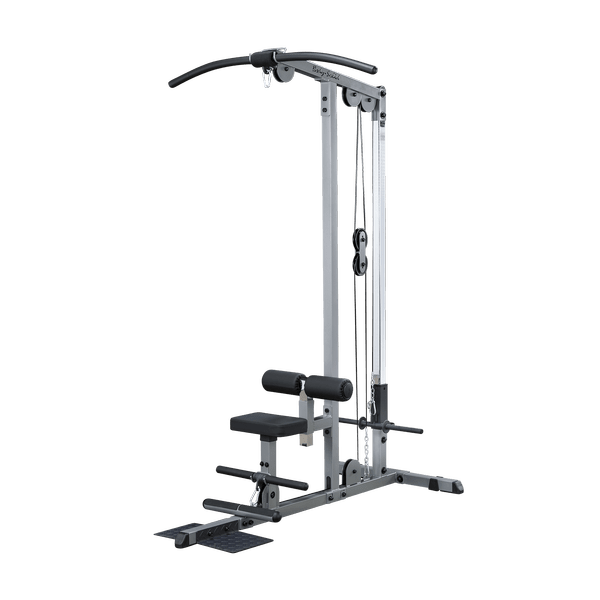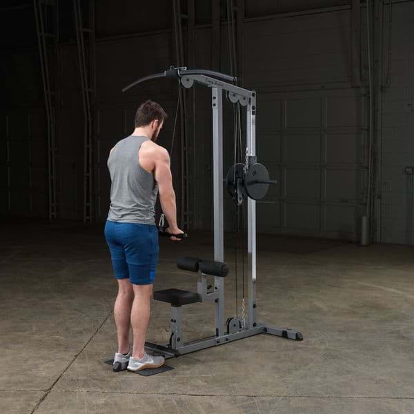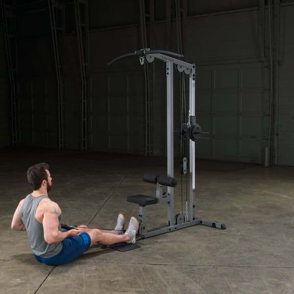 Mit der Body-Solid Latzug- und Ruderzugstation trainieren Sie an nur einem Gerät Ihre Brust-, Schulter-, Rücken- und Armmuskulatur. Durch verschiedene Griffbreiten beim Latziehen beanspruchen Sie unterschiedliche Bereiche der Rückenmuskulatur. Dadurch kann der Latissimus, der Trapezmuskel und die hintere Schultermuskulatur effektiv belastet werden. Dank des höhenverstellbaren Kniepolsters kann der Zugturm zum einen an jeden Benutzer schnell und einfach angepasst werden und zum anderen gewährleistet diese Einstellmöglichkeit eine ideale Trainingsposition. In Verbindung mit zusätzlichen Kabelzuggriffen können an der Latzug- und Ruderstation neben den klassischen Übungen auch unzählige Trainingsvariationen wie z.B. Bizeps-Curls und Trizeps-Übungen durchgeführt werden. Die robuste 5x5cm, 4-seitig geschweißte Stahlrahmenkonstruktion sowie extra starke, hochwertige DuraFirm-Polster mit reißfester Doppelnaht garantieren ein komfortables und vor allem sicheres Training.