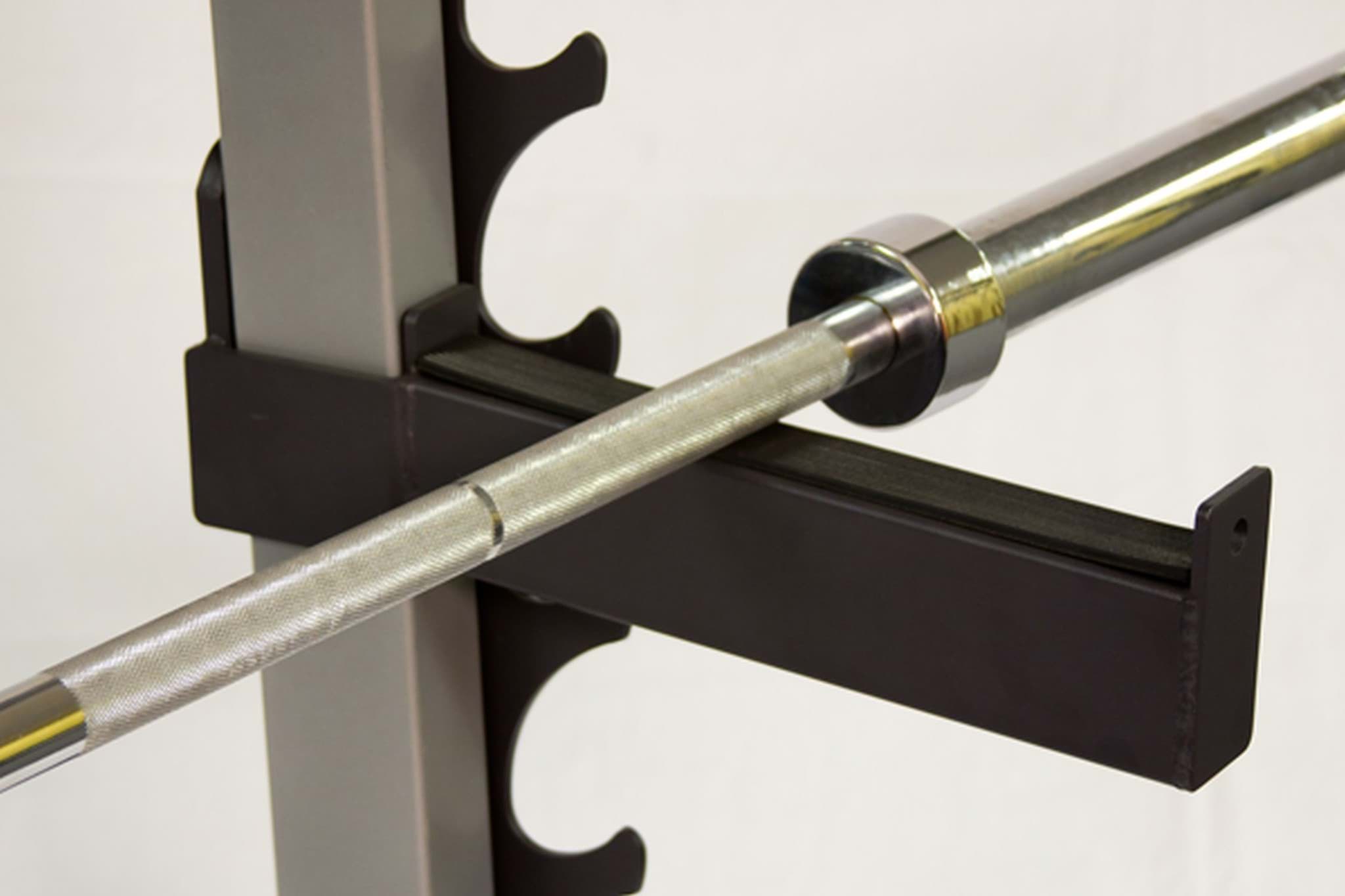 - 14 Ablagepositionen am Gun-Rack ermöglichen einseitige auf und ab Bewegungen, ohne die Hantelscheiben zu entladen oder die Hantelstange im Ganzen zu bewegen