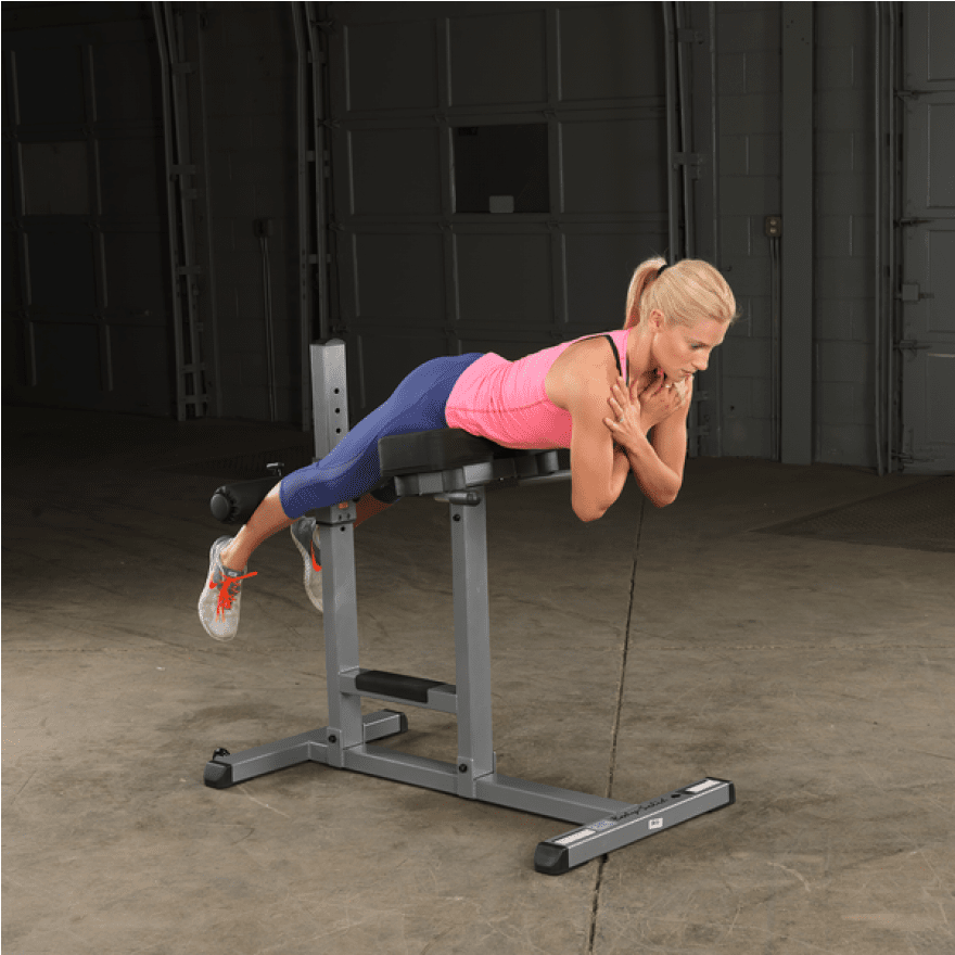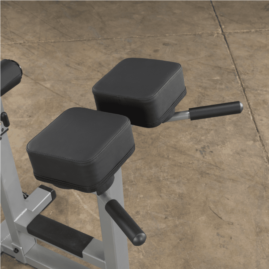 Mit dem Rückenstrecker von Body-Solid können Sie auf einfache und effektive Weise Ihre Bauch-, Rücken-, und Gesäßmuskulatur trainieren. Dabei können Sie Ihre untere Rückenmuskulatur gezielt trainieren, um so Rückenschmerzen vorzubeugen. Die Gesäßmuskeln werden trainiert, wenn Ihre Hüfte nach vorn etwas über das Polster hinausragt. In Bauchlage, mit auf dem Polster aufliegender Hüfte, wird der untere Rückenstrecker belastet, der für die allgemeine Körperhaltung zuständig ist. Die obere Bauchmuskulatur kann in Rückenlage auf den Polstern sitzend trainiert werden. Für ein Training der seitlichen Bauchmuskeln positionieren Sie sich seitlich liegend auf dem Gerät. Vertikal sowie horizontal verstellbare Fußpolster ermöglichen dabei eine exakte Anpassung an jede Benutzergröße. Extra dicke Auflagepolster mit reißfester Doppelnaht gewährleisten zudem eine angenehme und komfortable Trainingsposition bei jeder Übungseinheit. Ein robuste 5x5cm sowie 5x7,5cm Stahlrahmenkonstruktion mit durchgängigen Schweißnähten sorgt darüber hinaus für maximale Stabilität - auch bei hohen Belastungen