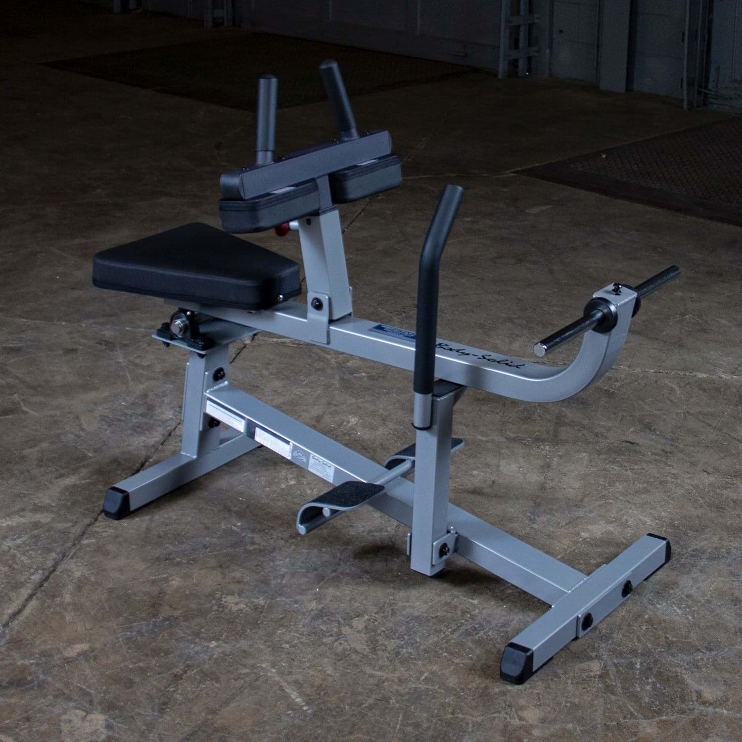 Die Body-Solid Wadenmaschine ist für ein extremes, professionelles Wadentraining konzipiert worden. Dank der sitzenden Position belasten Sie im Gegensatz zu anderen Wadenübungen Ihre Wadenmuskulatur nur mit dem aufgelegten Gewicht. Um auch einen friktionsfreien Bewegungsablauf beim Training mit hohen Gewichten zu gewährleisten, verfügt die GSCR-349 an den Hauptdrehpunkten über kugelgelagerte Pillow-Block-Lager. Das Übersetzungsverhältnis vom Trainingswiderstand zum aufgelegten Gewicht beträgt 3:1, sodass sich die Wadenmaschine perfekt zum Aufbau einer massiven Wadenmuskulatur eignet. Die rutschfeste, abgerundete Fußauflage sorgt dabei für einen maximalen Bewegungsradius. Die extrem dicke Kniepolsterung mit den angebrachten Handgriffen unterstützt Sie zudem bei der Übungsdurchführung der letzten Wiederholungen.