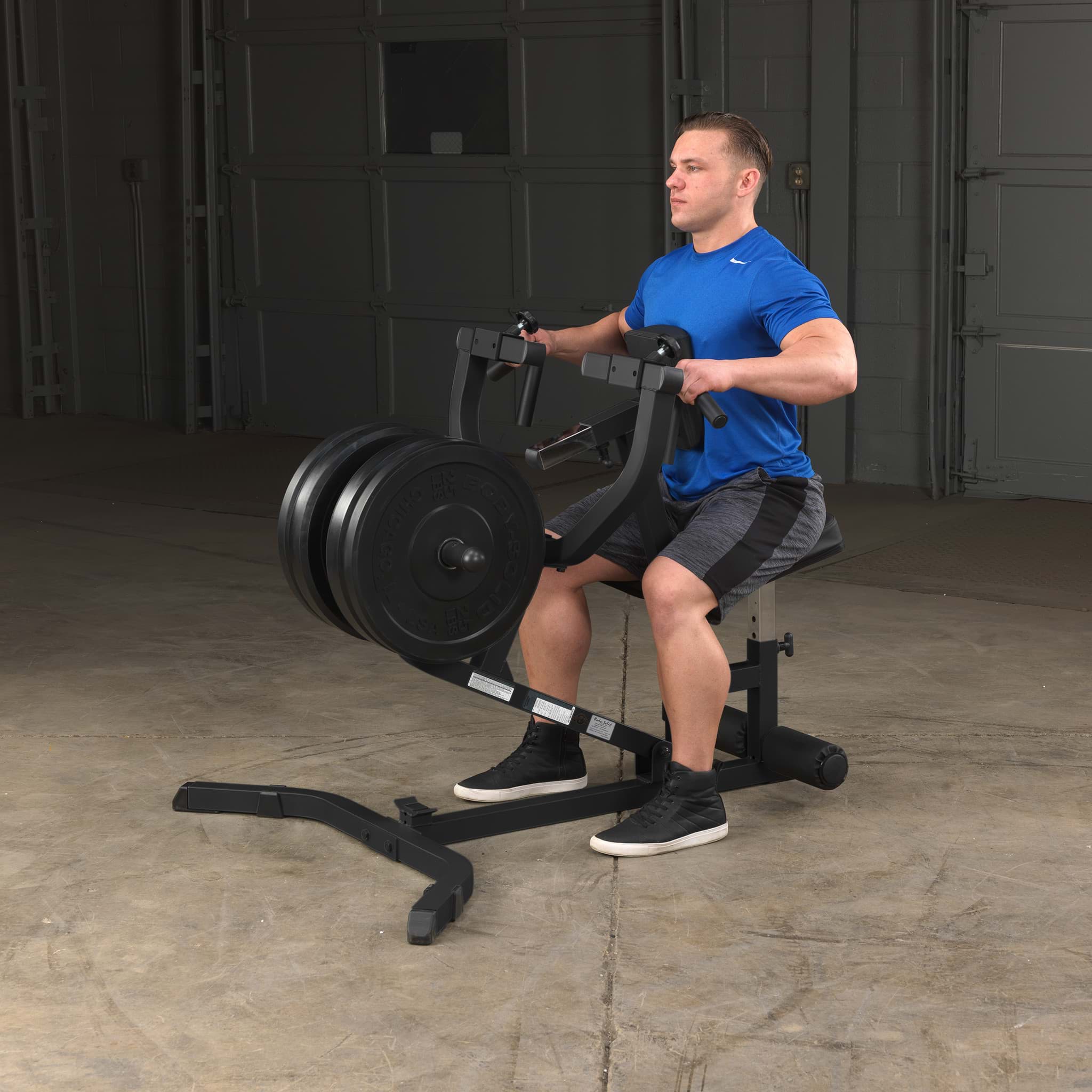 Mit der Body-Solid GSRM-40 Rudermaschine können Sie Ihre mittlere Rückenpartie sowie den schwer zu trainierenden Latissimus effektiv und zielorientiert belasten. Dank der zwei möglichen Griffpositionen (senkrecht, ca. 45°) und den in der Breite verstellbaren Griffen können unzählige Übungsvariationen durchgeführt werden. Die robuste 5x5cm, 4-seitig geschweißte Stahlrahmenkonstruktion und die extra starken, hochwertigen DuraFirm-Polster mit reißfester Doppelnaht garantieren dabei ein komfortables und vor allem sicheres Training. Das mehrfach verstellbare Brust- und Sitzpolster sorgt für eine schnelle und einfache Anpassung an jeden Trainierenden. Zudem wird mit dem einstellbaren Brustpolster eine korrekte Trainingsposition eingenommen, sodass ein anspruchsvolles und effizientes Training möglich ist.