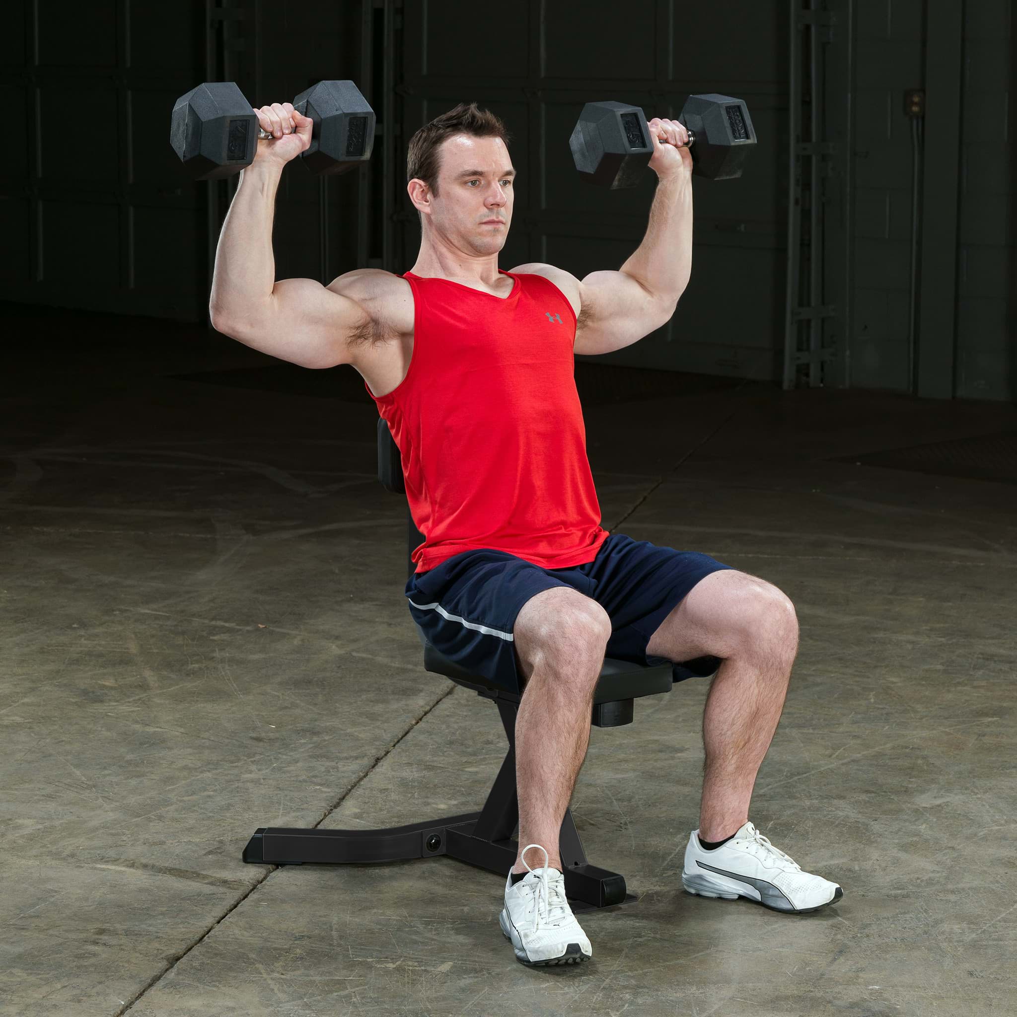 Der Body-Solid Trainingsstuhl ist so konzipiert worden, dass er während des Trainings eine korrekte Sitzhaltung gewährleistet, um den Rücken zu entlasten, ohne dabei die Bewegungsfreiheit einzuschränken. Aus diesem Grund ist der GST-20 der perfekte Trainingspartner für sitzende Übungen wie Schulterdrücken, Trizeps-Pullover, French Curls, Konzentrationscurls, Handgelenkscurls und vieles mehr. Er eignet sich ebenfalls hervorragend für Langhantelübungen in einem Rack oder als Einzelstation mit Kurzhanteln. Der breite Standfuß sowie die stabile Stahlrahmenkonstruktion mit durchgängigen Schweißnähten sorgen während der Übung für die nötige Stabilität und Sicherheit - auch beim Training mit hohen Gewichten. Extra starke, hochwertige DuraFirm-Polster mit reißfester Doppelnaht bieten dabei maximalen Komfort und garantieren eine lange Lebensdauer.
