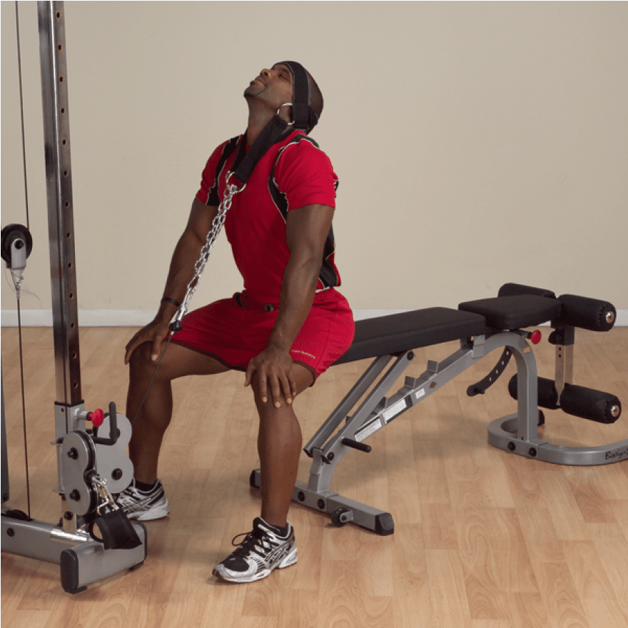 Die für alle Sportler empfohlenen und speziell für Kontaktsportarten entwickelten Kopfgurte trainieren die Nacken- und oberen Rückenmuskeln. Der Body-Solid Nackentrainer ist vollständig mit hochverdichtetem Neopren gepolstert, um Stöße zu absorbieren und Schnitte, Scheuerstellen und Abrieb zu vermeiden. Zudem kann der MA-307 mit Hantelscheiben verwendet werden oder per Karabinerhaken an einen Kabelzug angeschlossen werden. Dabei macht ein extrem starker Klettverschluss die Anpassung an jede Körpergröße zum Kinderspiel.