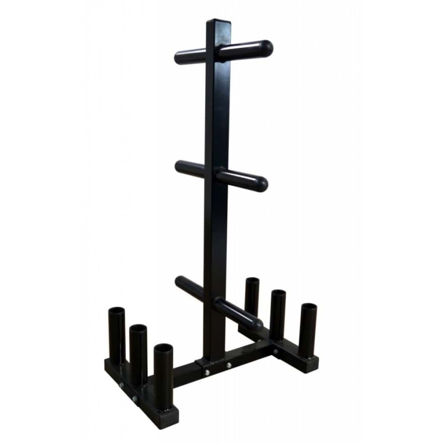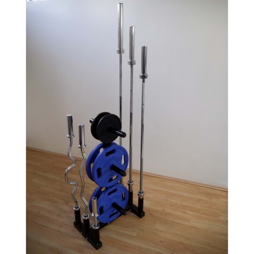Mit dem POWER-EXTREME Hantelscheibenständer und Stangenhalter halten Sie Ihren Trainingsbereich im Fitness- oder Heimstudio sicher, sauber und organisiert. Jeweils sechs Hantelscheibenablagen und senkrechte Stangenhalter bieten dabei genügend Platz für Ihre 50mm-Hantelscheiben, Langhanteln, SZ-Stangen, Kurzhanteln, Rahmenhanteln etc. Auf den unteren vier Aufnahmedornen lassen sich zudem problemlos Hantelscheiben (Bumper-Plates) mit einem Außendurchmesser von 45cm übereinander platzieren. Die zentrale Gewichtsverteilung und der extrem stabile Stahlrahmen mit durchgängigen Schweißnähten garantieren zuletzt beim Be- und Entladen maximale Stabilität.