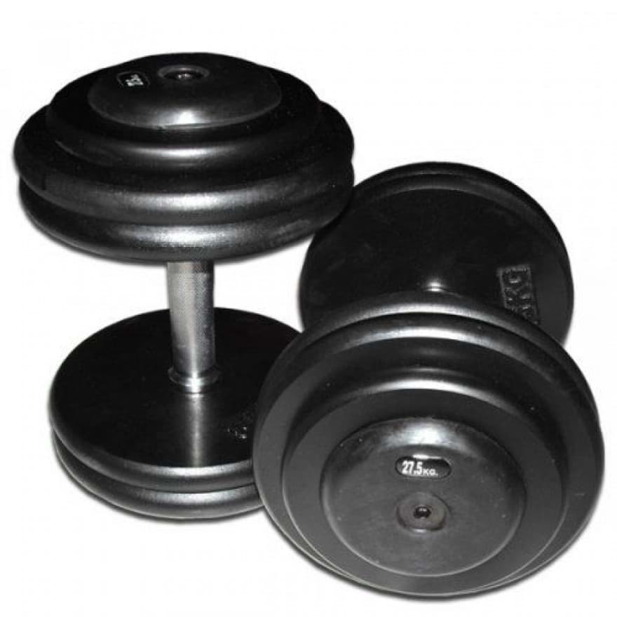 - die Hantelscheiben bestehen aus einem massiven Gusskern, wodurch sie unempfindlich und widerstandsfähig gegen Abrieb und Abplatzungen sind