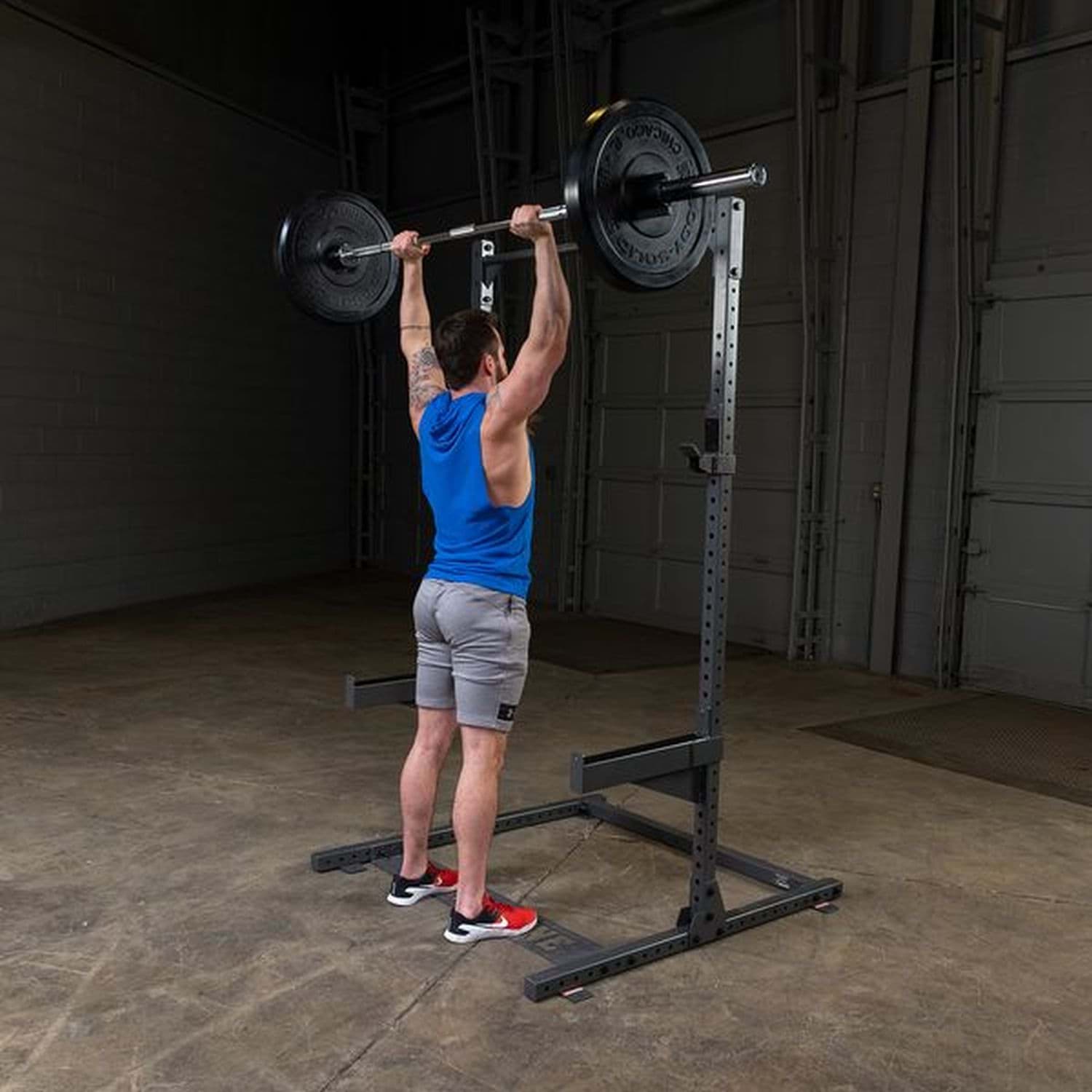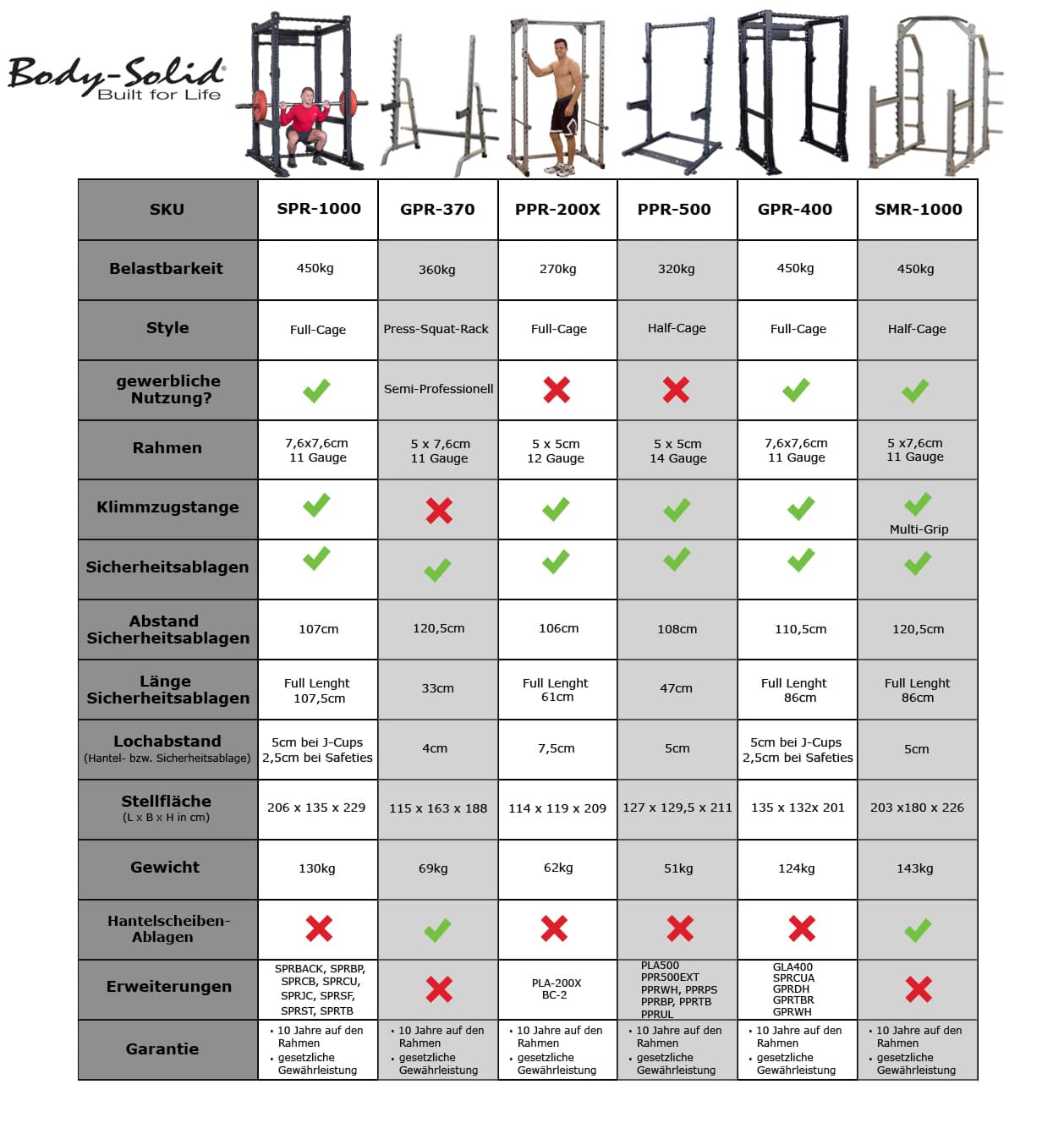 Das Body-Solid Half-Rack aus der Powerline-Serie besticht durch seine vielseitigen Einsatzmöglichkeiten und ist somit das perfekte Einsteigermodell für jedes Heimstudio. In der Basisvariante lassen sich neben Kniebeugen, Bent-Over Row und Deadlifts auch Shoulder, Clean und Military Press Übungen auf eine einfache und effektive Weise durchführen. Dabei sind die Sicherheits- und Hantelablagen mehrfach verstellbar, sodass ein sicherer Trainingsablauf während jeder Übung gewährleistet ist. Durch optionale Anbauten lässt sich das Half-Rack zudem zu einem Power-Rack mit oder ohne Latzug- und Ruderfunktion erweitern.