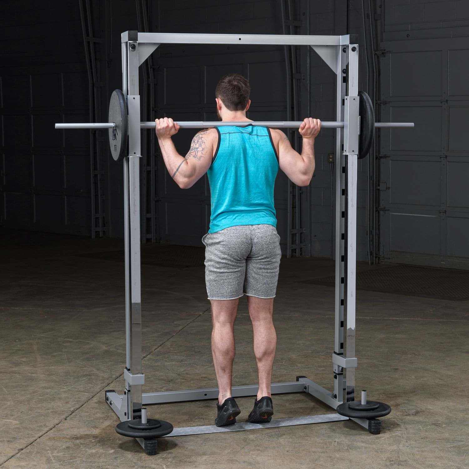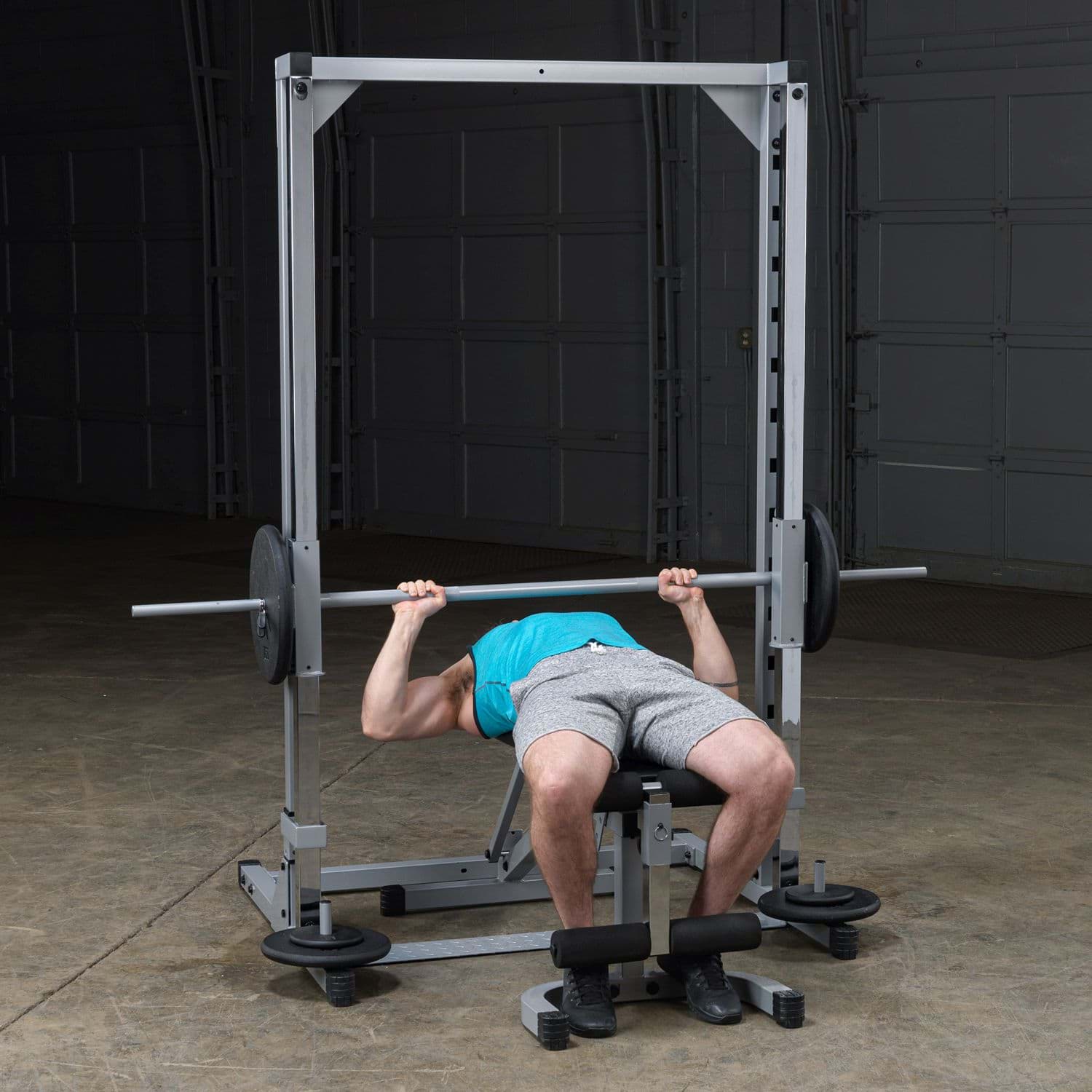 Die Body-Solid Multipresse aus der Powerline-Serie ist ideal für alle Bankdrückvarianten als auch für Schulterdrücken, Nackendrücken, Kniebeugen, Shrugs oder Nackenziehen geeignet. Dank der geführten, 14,5kg schweren Langhantelstange werden zum einen Ausführungsfehler vermieden und zum anderen hilft es dem Nutzer die zu trainierende Muskulatur auch zielorientiert zu belasten. Zwei Super-Glide-Schlitten mit Gleitplättchen gewährleisten dabei einen leichten Lauf, welche das Verkanten bzw. Haken verhindern und somit eine nahezu friktionsfreie Übungsdurchführung ermöglicht.