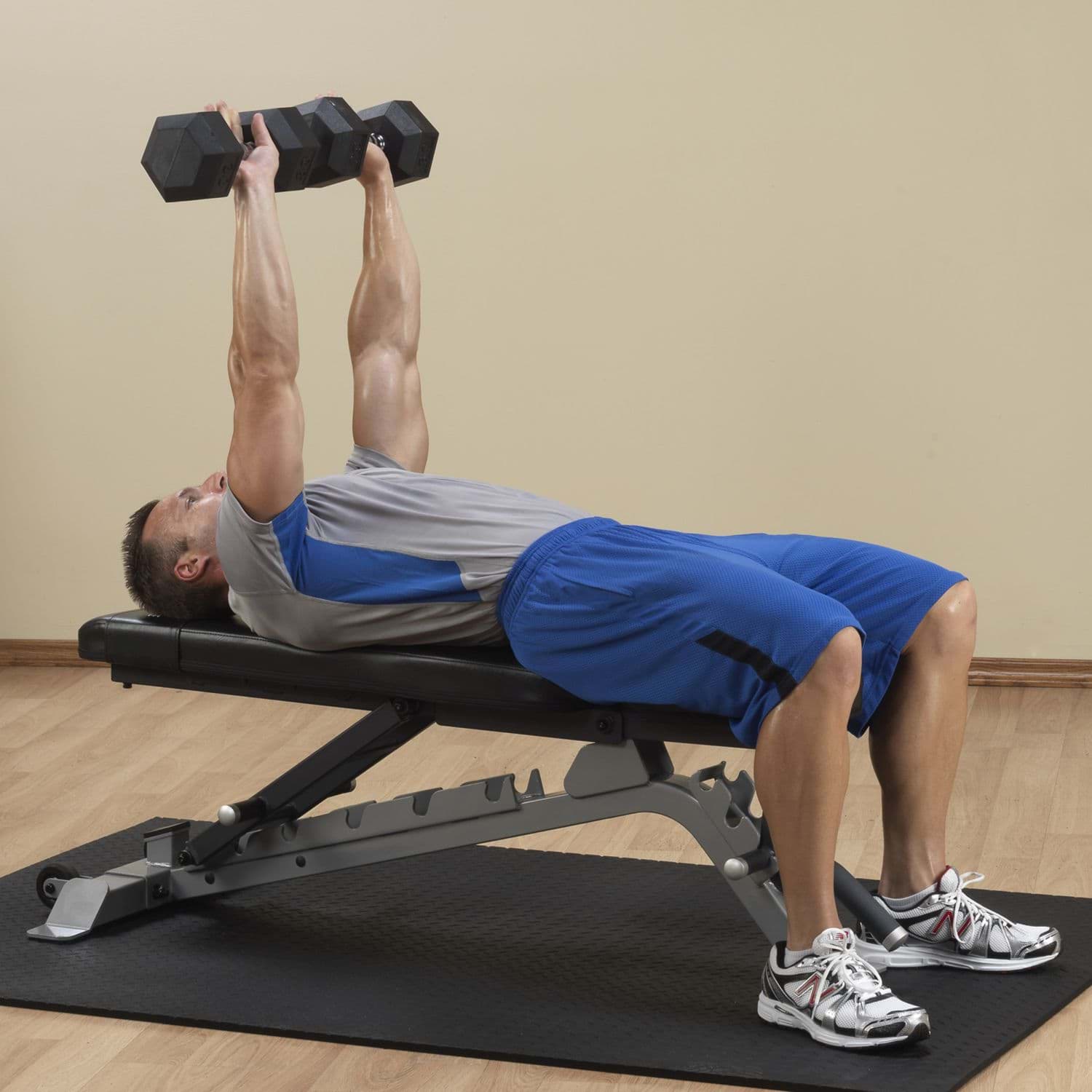 Die Body-Solid SFID-325 ist so konzipiert worden, dass sie den Anforderungen jeder kommerziellen Einrichtung gerecht wird. Die Hantelbank lässt sich von einer negativen über eine flache bis hin zu mehreren schrägen Trainingspositionen einstellen. Das hochwertige sowie extrem belastbare Sitz- und Rückenpolster lässt sich dabei unabhängig voneinander verstellen. Dank der 5x7,5cm starken Stahlrahmenkonstruktionen kann die Kombibank bis zu 450kg belastet werden und ist somit unverzichtbar für jedes High-End-Training im Fitnessstudio. Der vordere Transportgriff in Kombinationen mit den überdimensionierten Räder lassen dabei eine schnelle und einfache Positionierung im Studio/Trainingsraum zu. Somit ist die Body-Solid SFID-325 die perfekte Ergänzung für Squat-Racks, Power-Racks und Smith-Machines im kommeriellen Bereich!