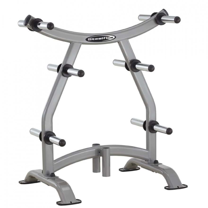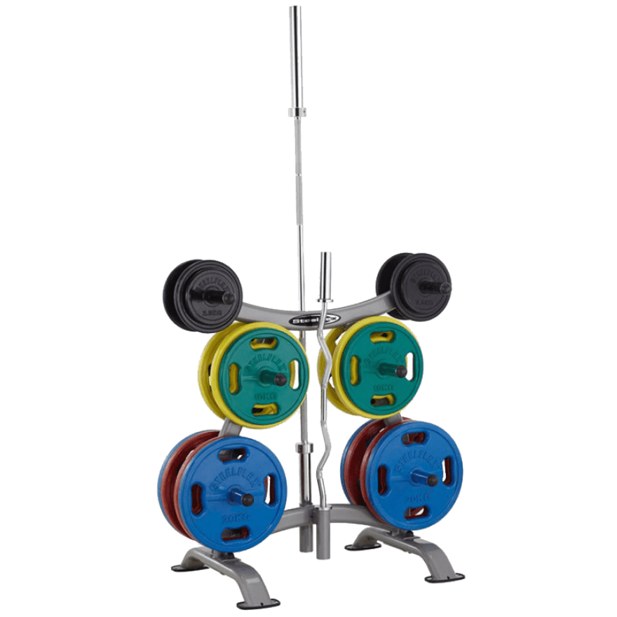 Der Steelflex Hantelscheibenständer & Stangenhalter eignet sich perfekt zur Aufbewahrung von 50mm Hantelscheiben und Hantelstangen. Dank der 12 Hantelscheibenablagen mit jeweils einer Länge von 20cm und den beiden Stangenhülsen bietet der NTR genügend Platz für das Trainingsequipment im Studio, Verein oder anderen kommerziellen Einrichtungen. Die unteren 8 Scheibenablagen eignen sich dabei aufgrund des großen Abstandes auch für Bumper-Plates mit einem Außendurchmesser von 45cm. Der extrem stabile 5x7,5cm Stahlrahmen aus ovalen Rohren sorgt zudem beim Be- und Entladen für absolute Sicherheit.